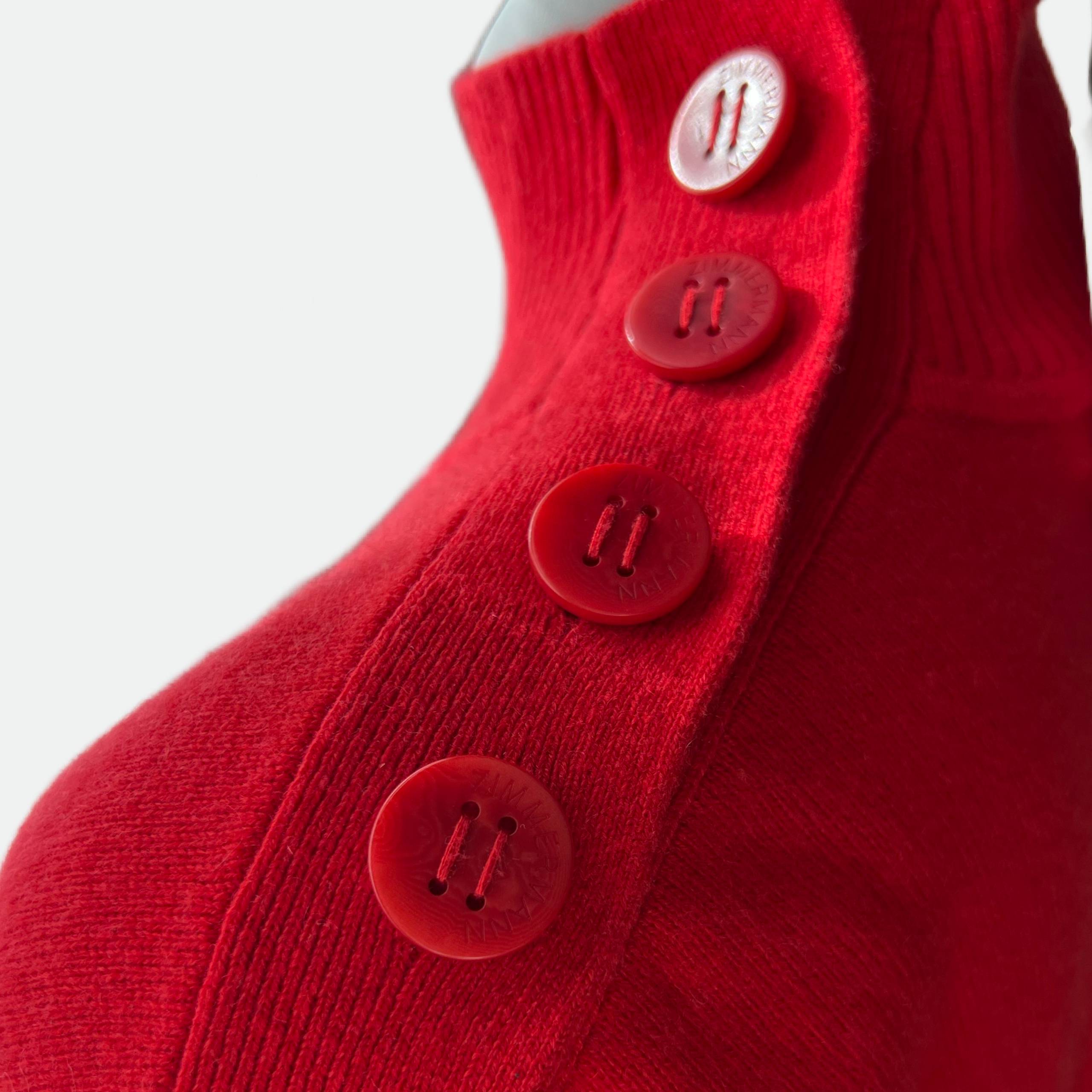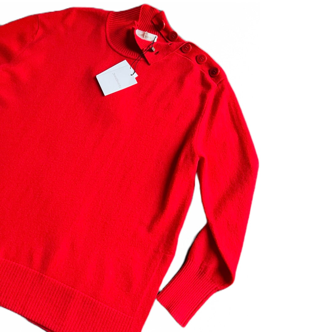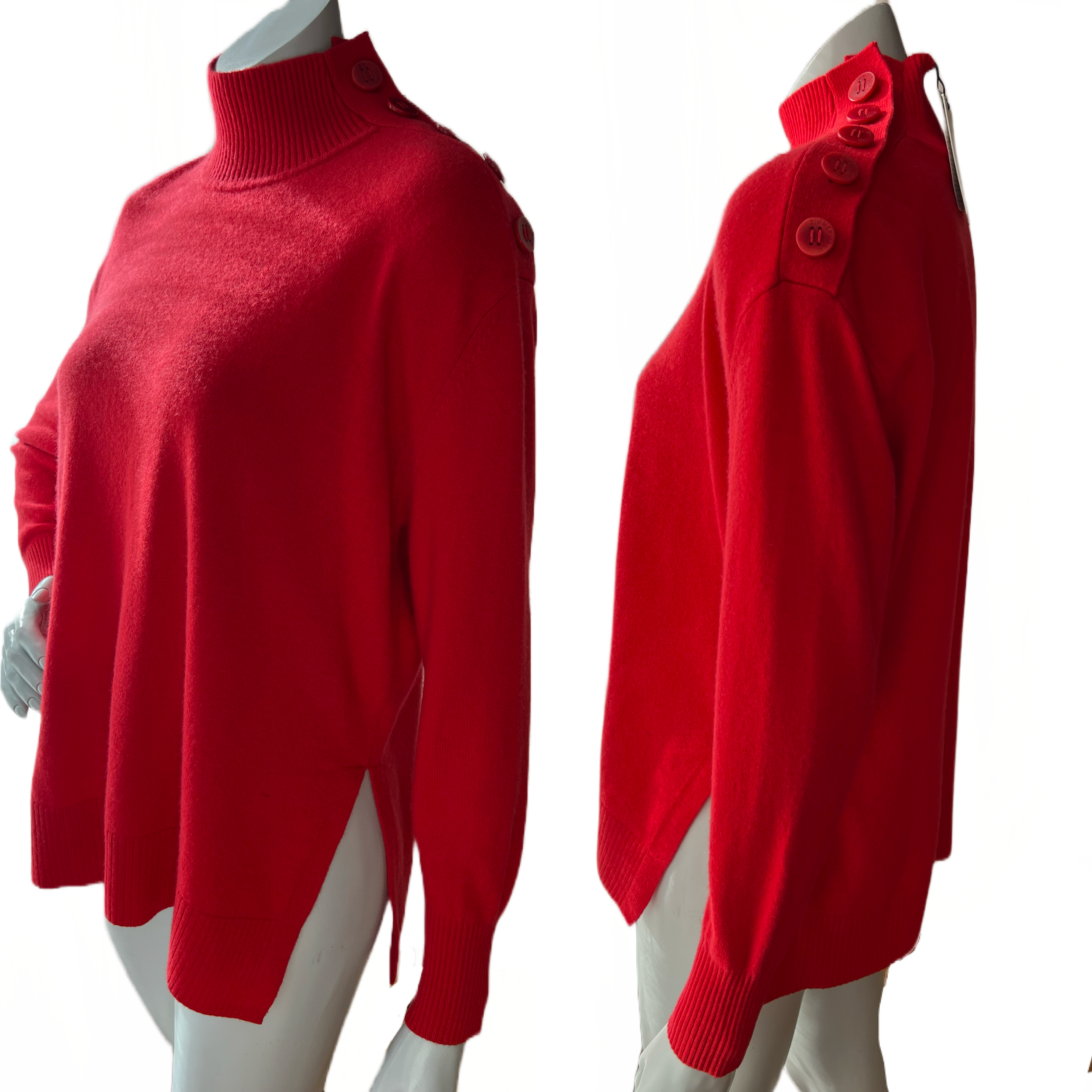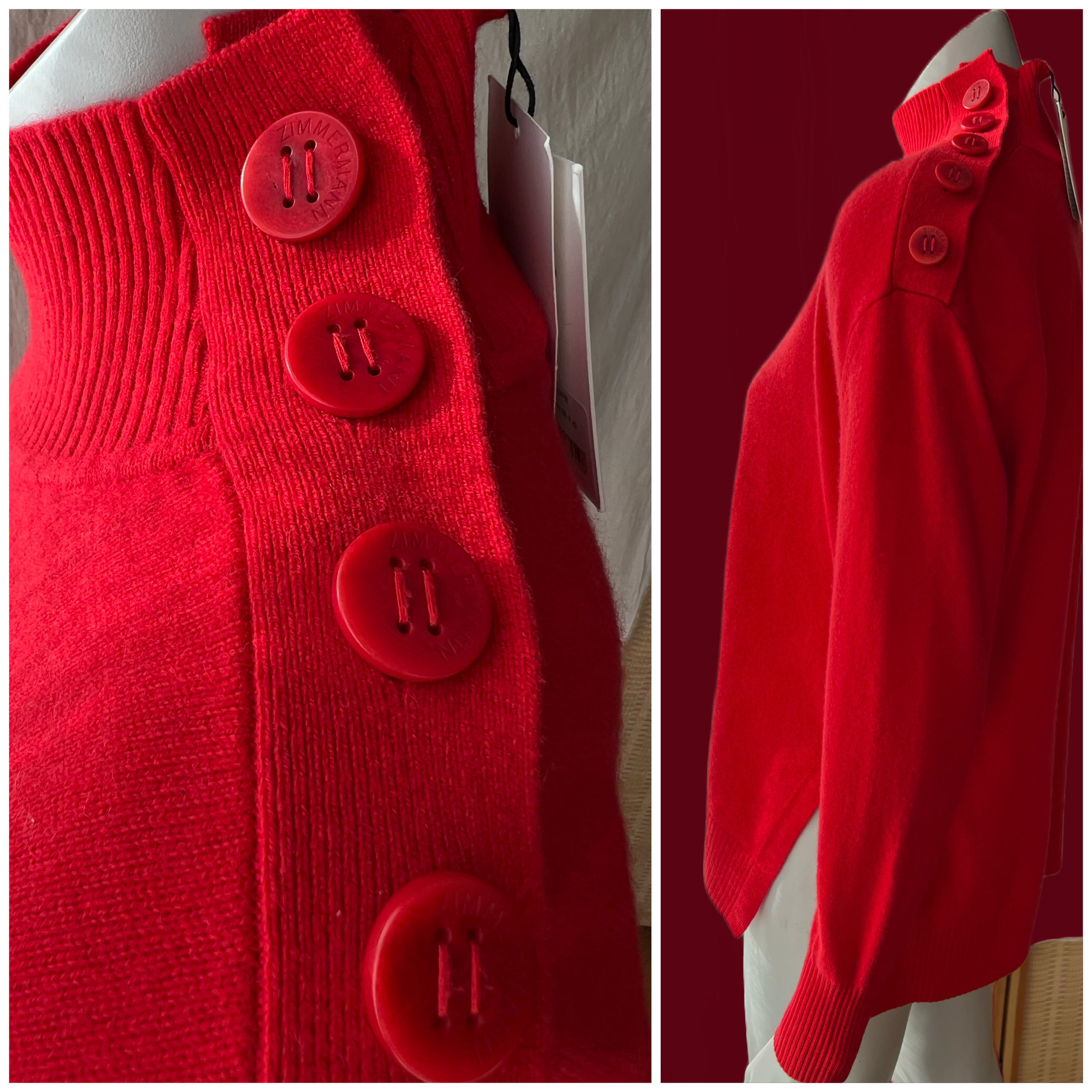 Lovely turtleneck cashmere sweater from the Australian brand Zimmermann. Has branded Zimmermann red buttons. Slits at sides. New with tags. A great cozy addition to your wardrobe at the fraction of the price!