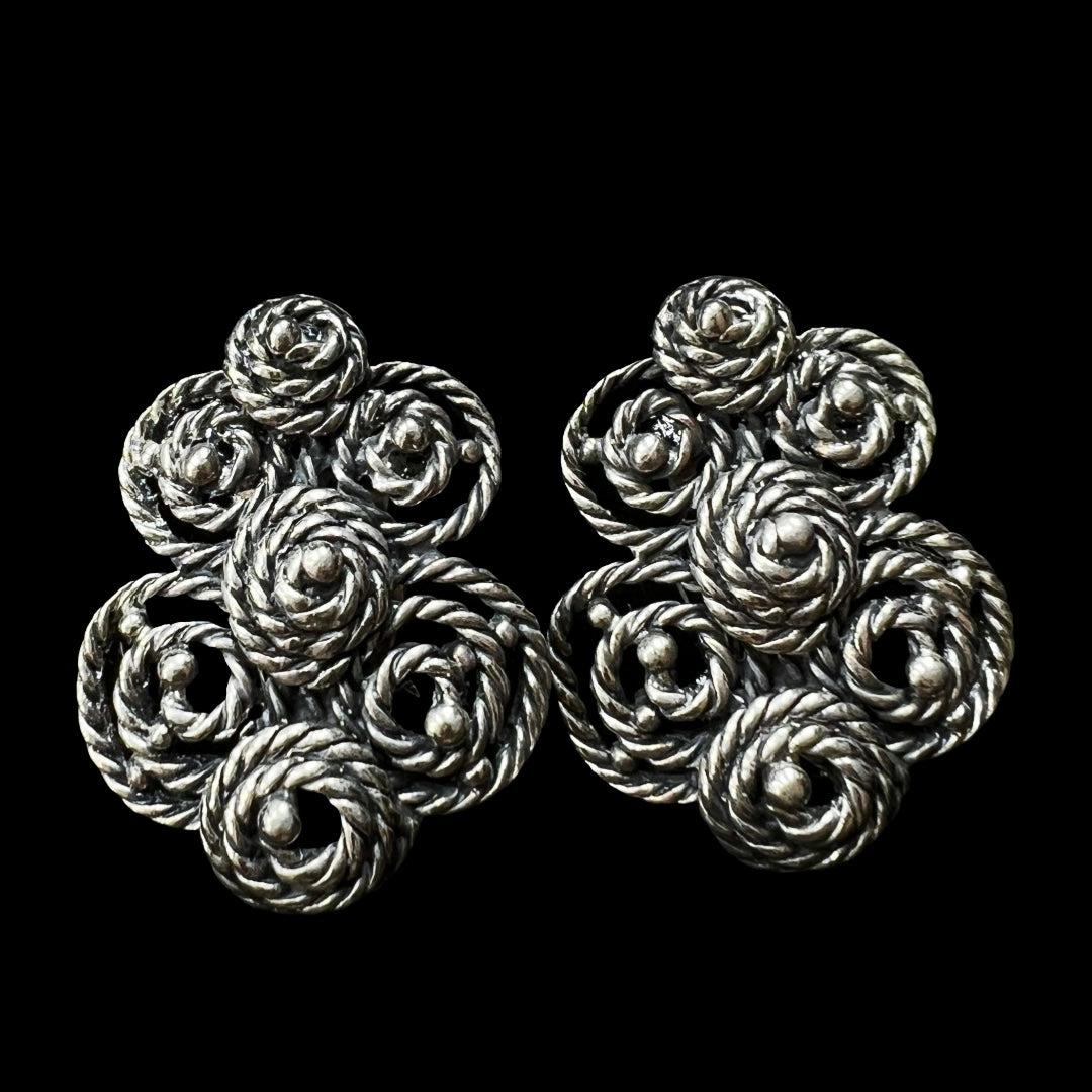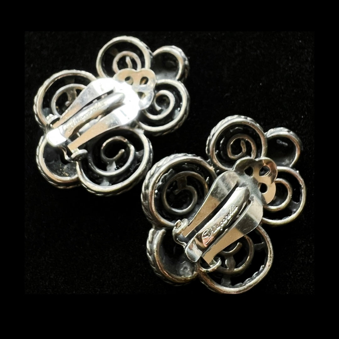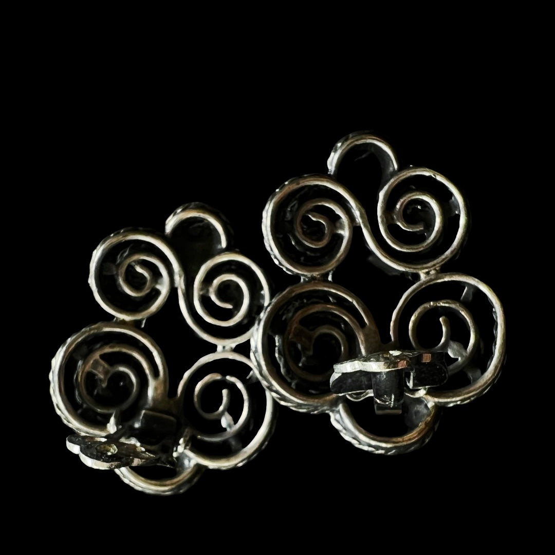 Surreal silver swirl braided Schiaparelli clip on earrings. There is something so magical about these. You can wear them as pictured or turn to the side to be a bit more of an ear climber. Textured spirals with nice levels of depth. In love!