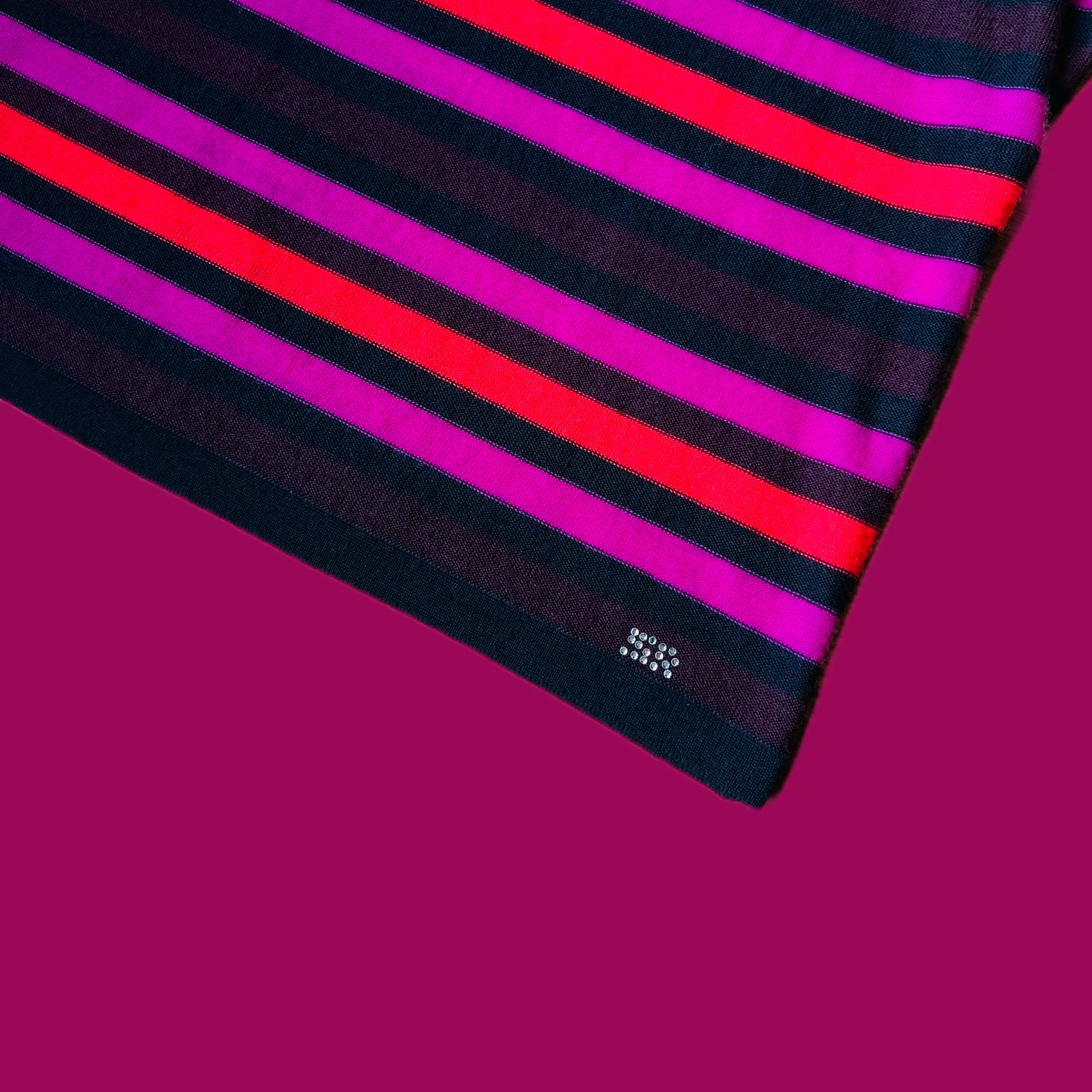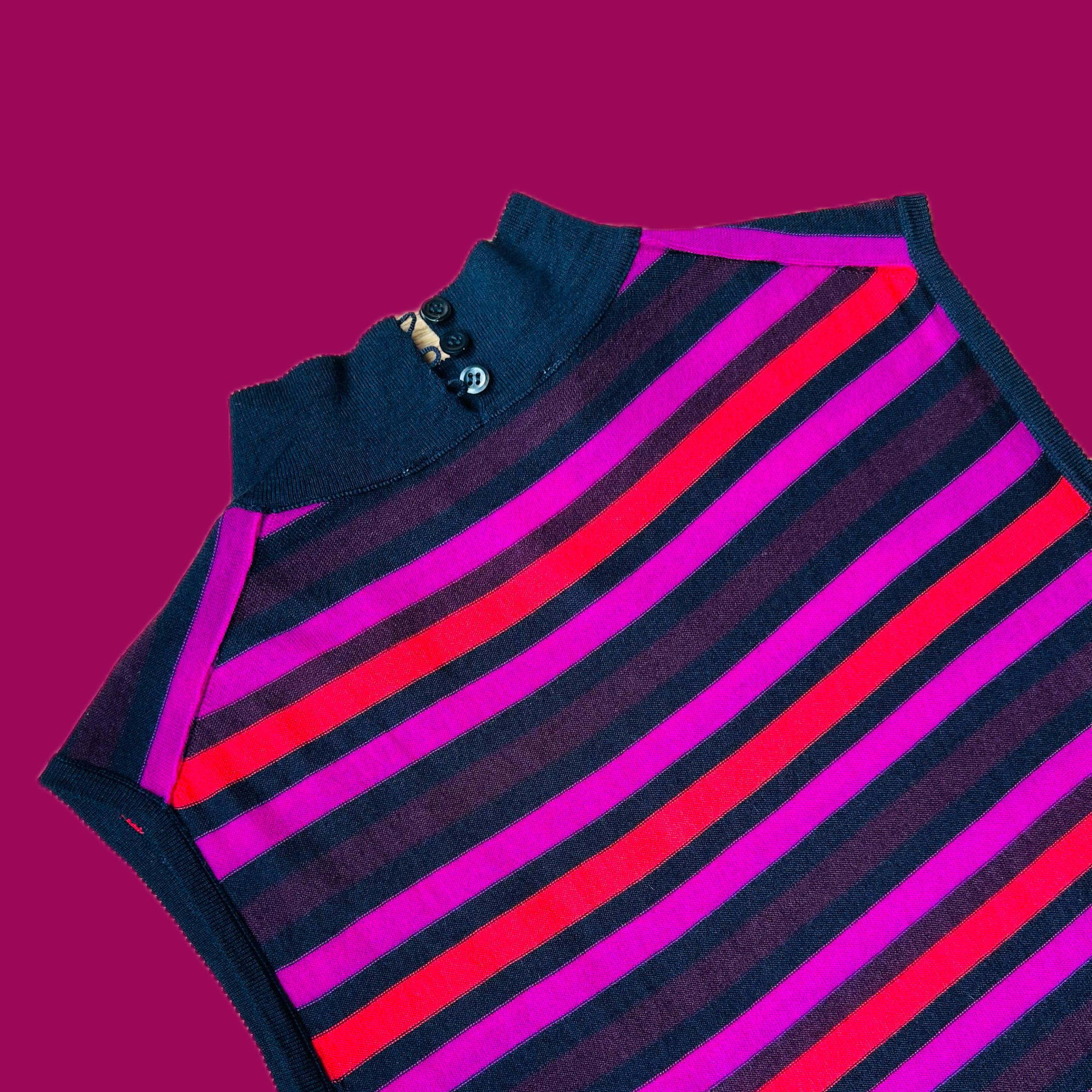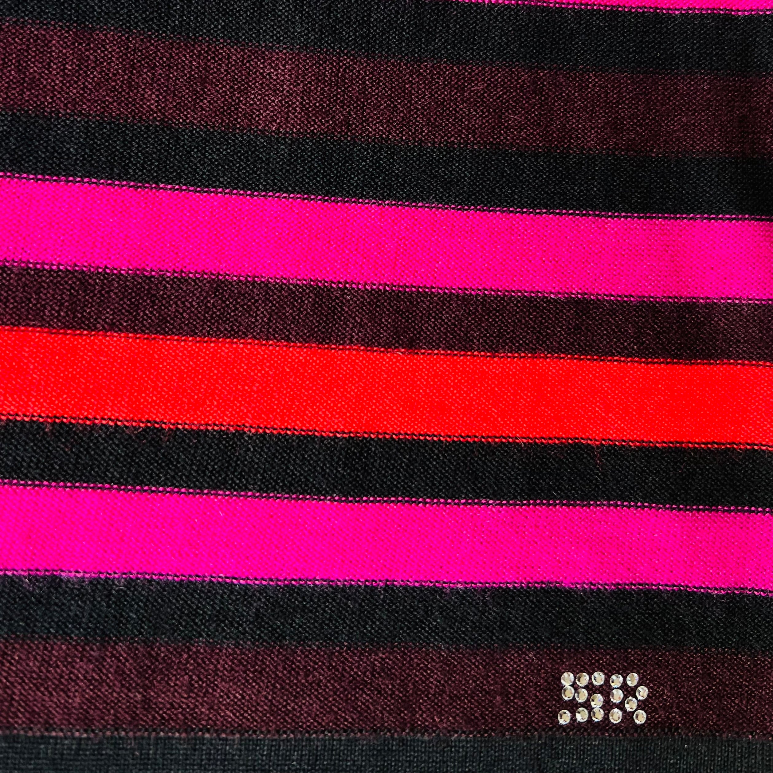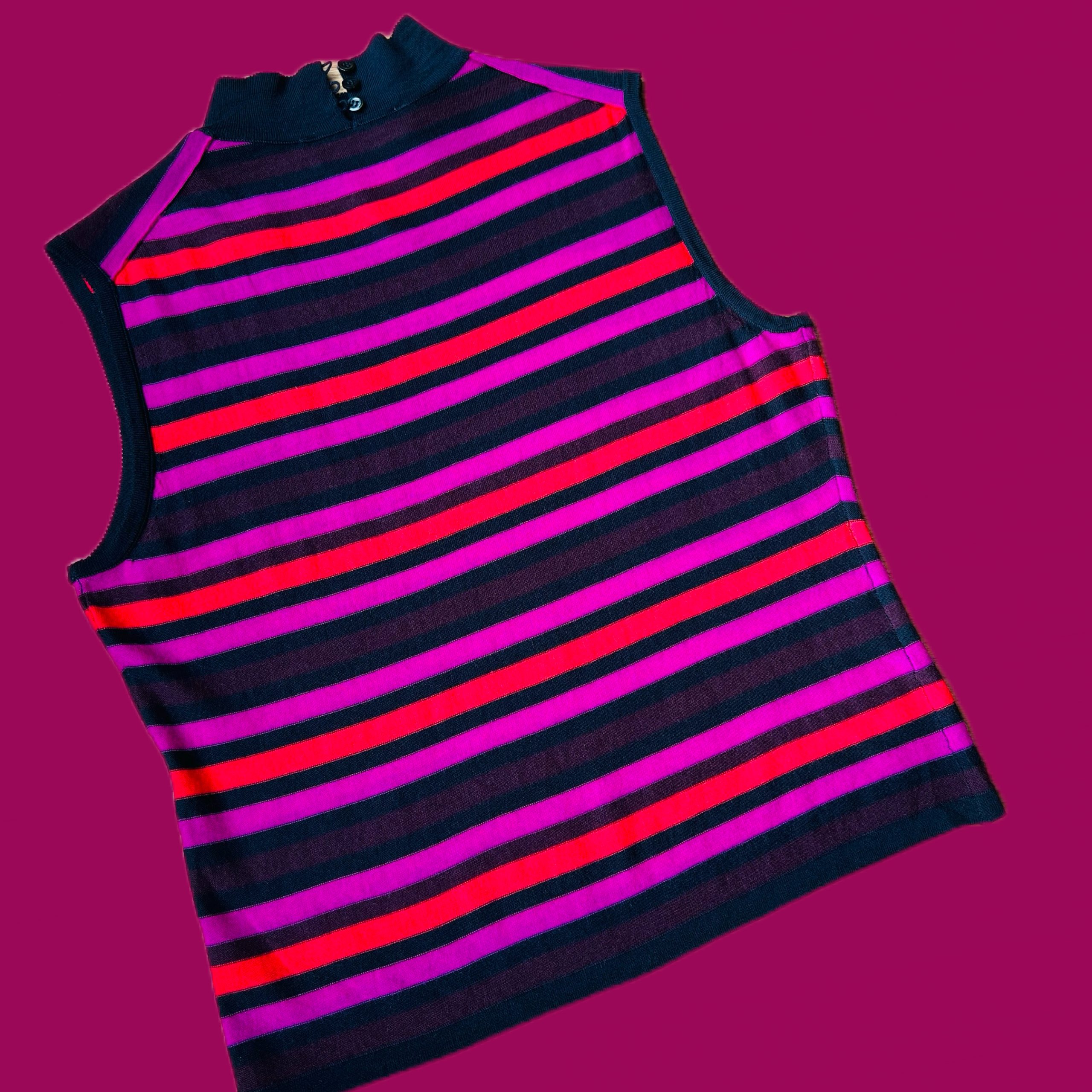Super soft lightweight Sonia Rykiel designer top. Mock neck. Striped knit. Pulls over head to wear with buttons at back of neck. Jeweled SR at bottom of the garment. The cashmere makes it sooo soft to the touch! Would be hard to tell this is not a current piece from their collection!