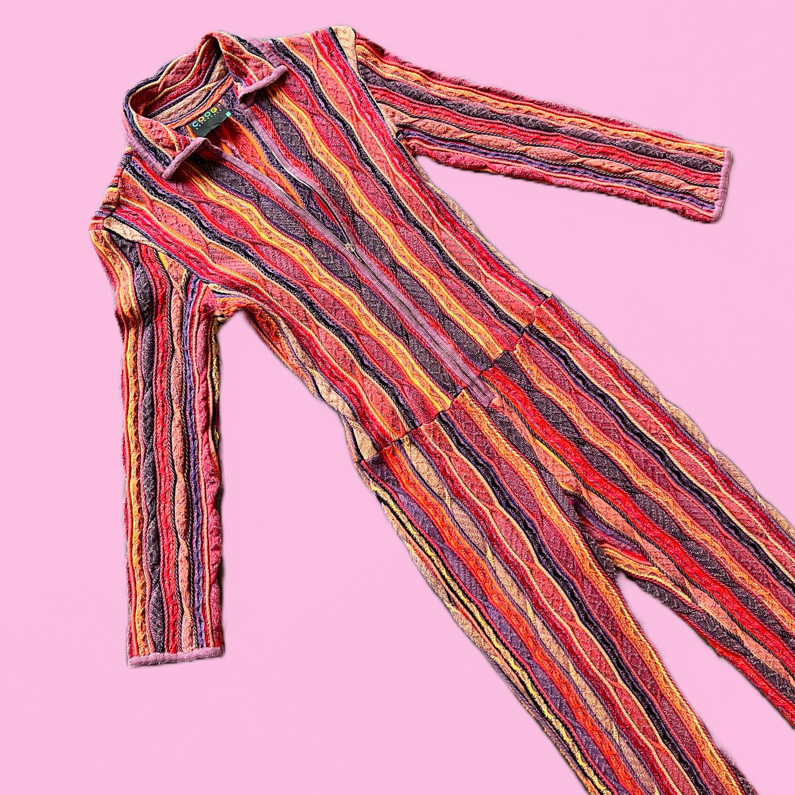 🌈 You can't get better than a rainbow Coogi jumpsuit in tones of orange, yellow, purple, black. Zips up front ~ be as sexy or demure as you'd like. Hugs the body. The highest order of the Coogi line ~ a full jumpsuit omg!Â