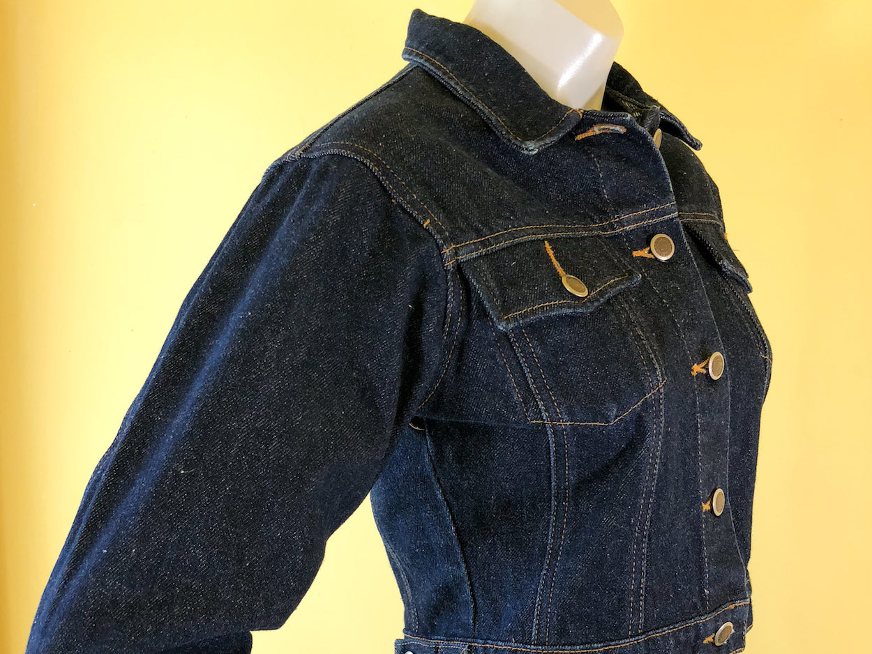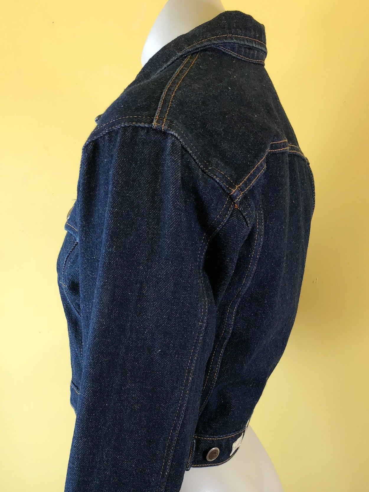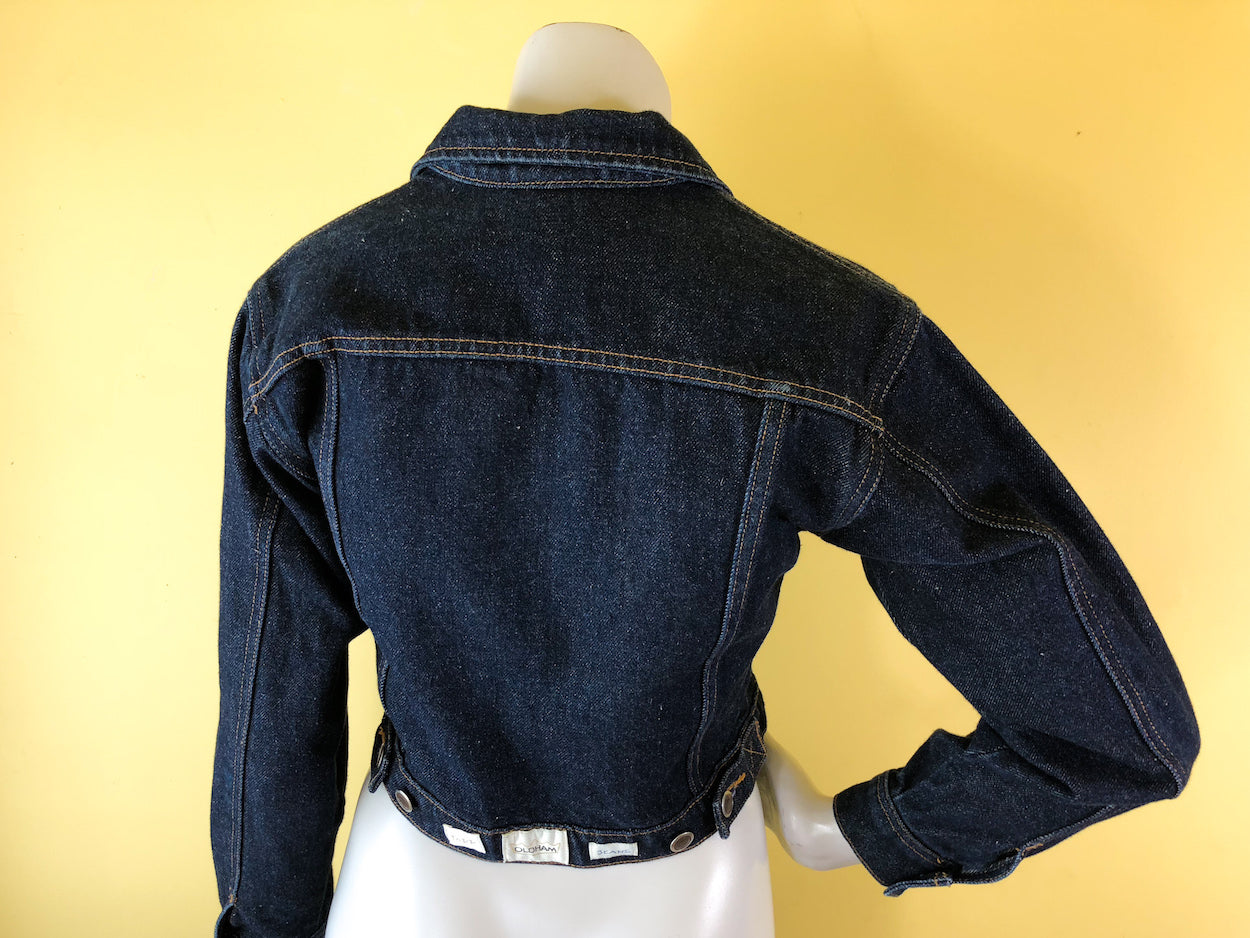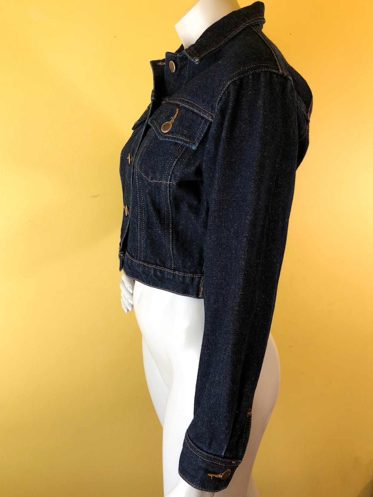 Super sexy cropped 90s Todd Oldham dark indigo jean jacket. DREAM piece. Wear with literally everything you own. Thee most versatile designer vintage piece ever!
