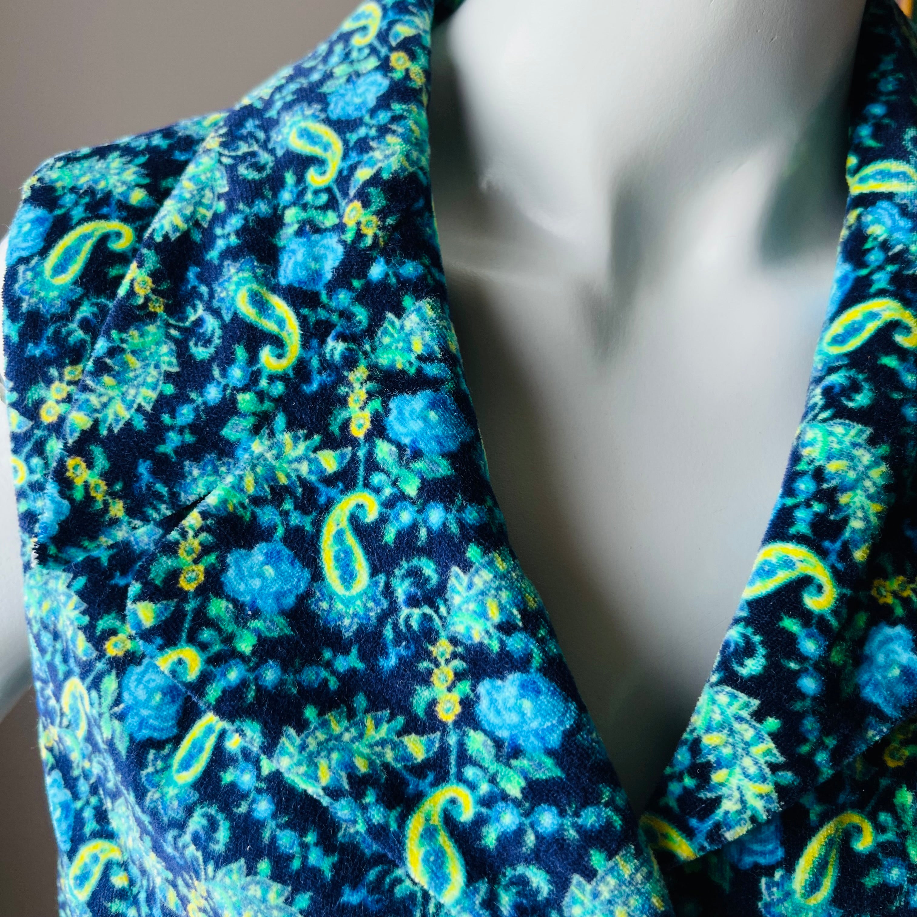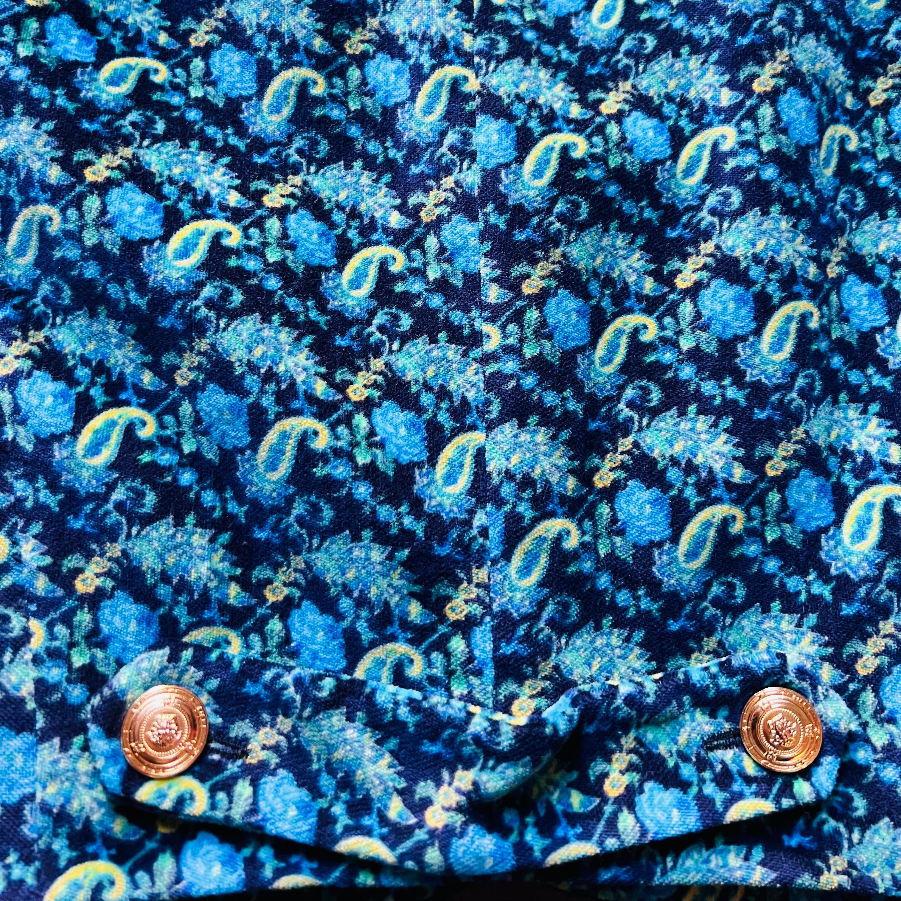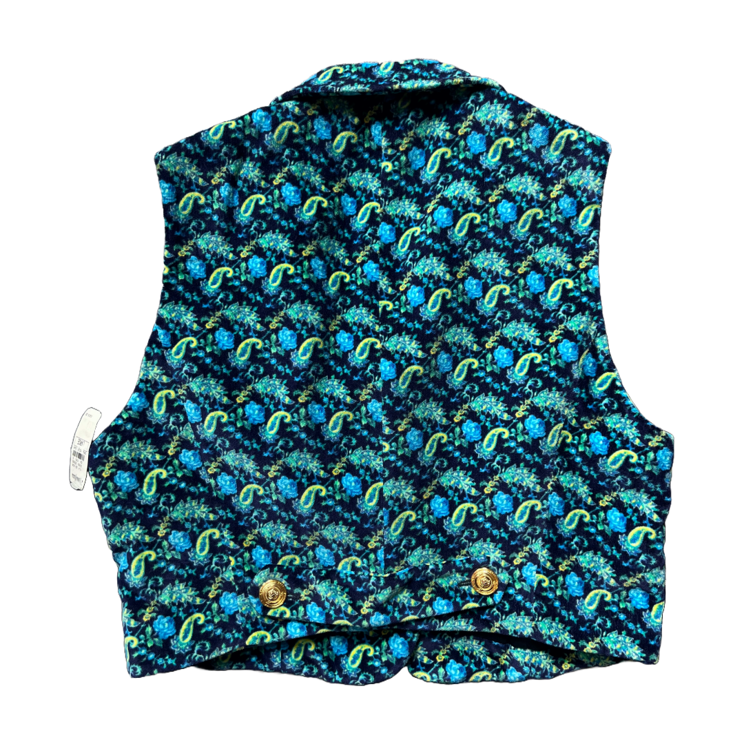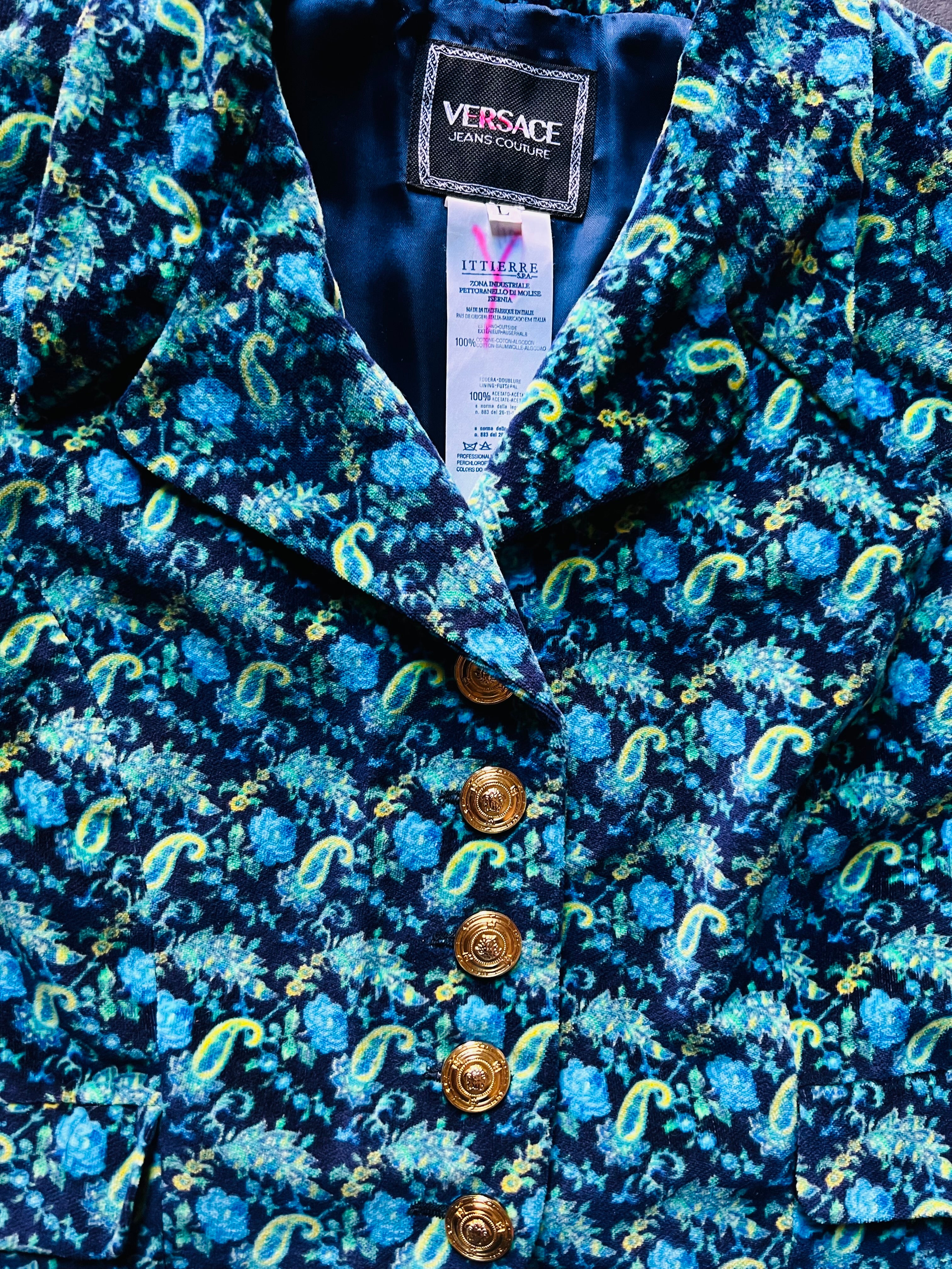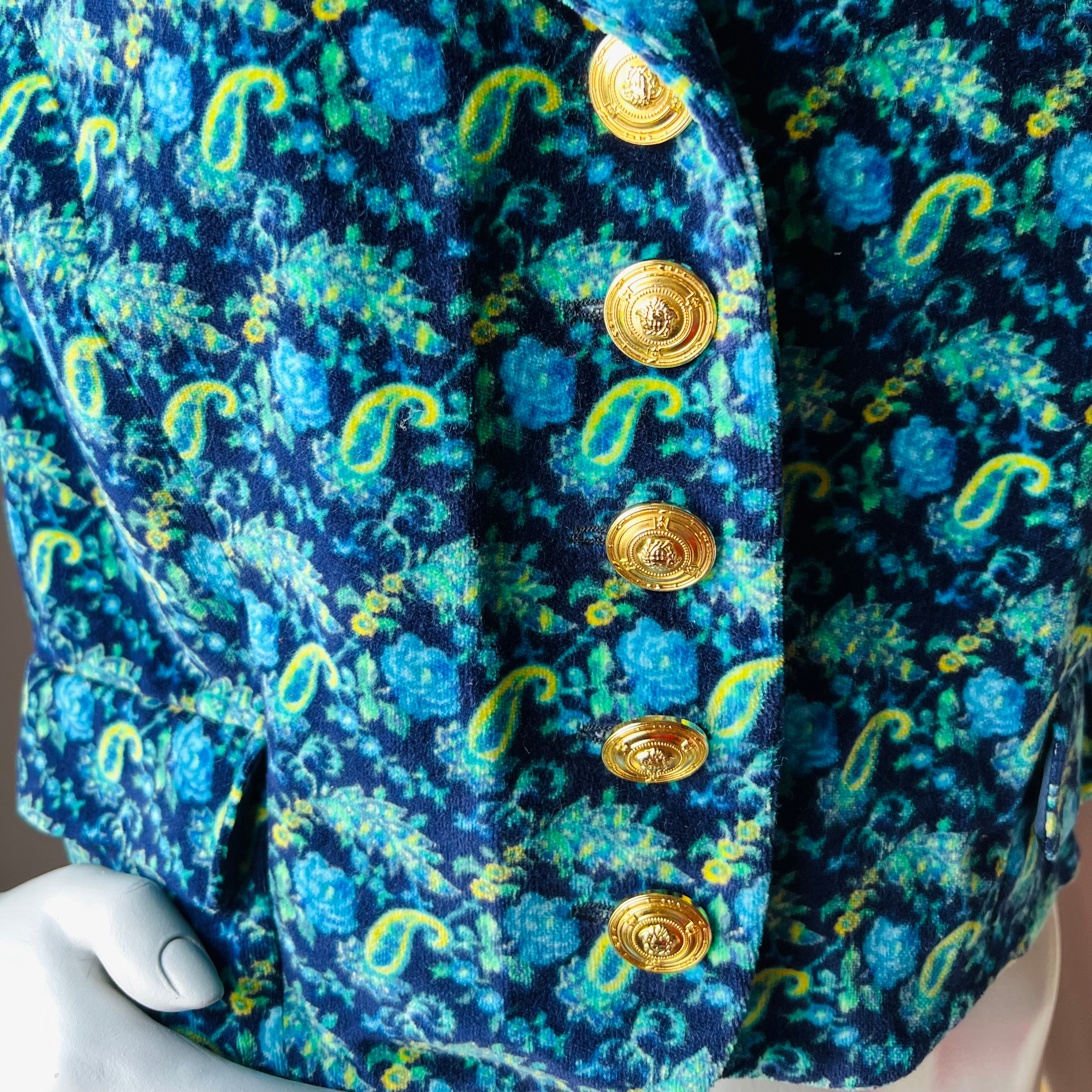Stunning soft velvet paisley 90s Versace Jeans Couture vest. Gorgeous gold medusa buttons. Lined. Never worn, new with tags. Original price $315. Hologram on tag intact. Pockets are still sewn mostly shut. Lovely collar. Back detail with gold Medusa buttons.