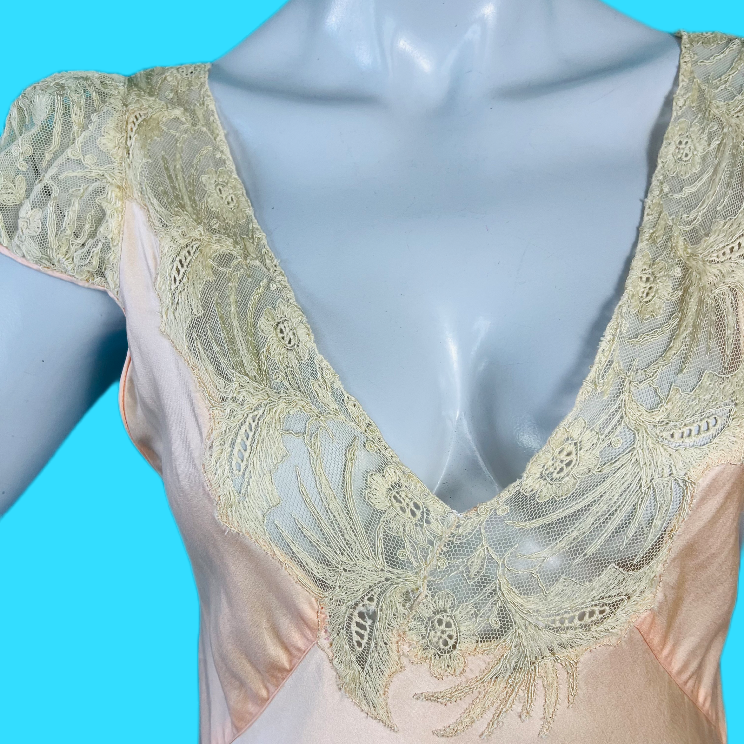 🩰 Ballet slipper pink 1940s lace and satin slip dress. Intricate lace details throughout. Cap sleeves. Has small belt loops if you'd like to add a ribbon. Has a lovely drape on the body. An amazing piece!