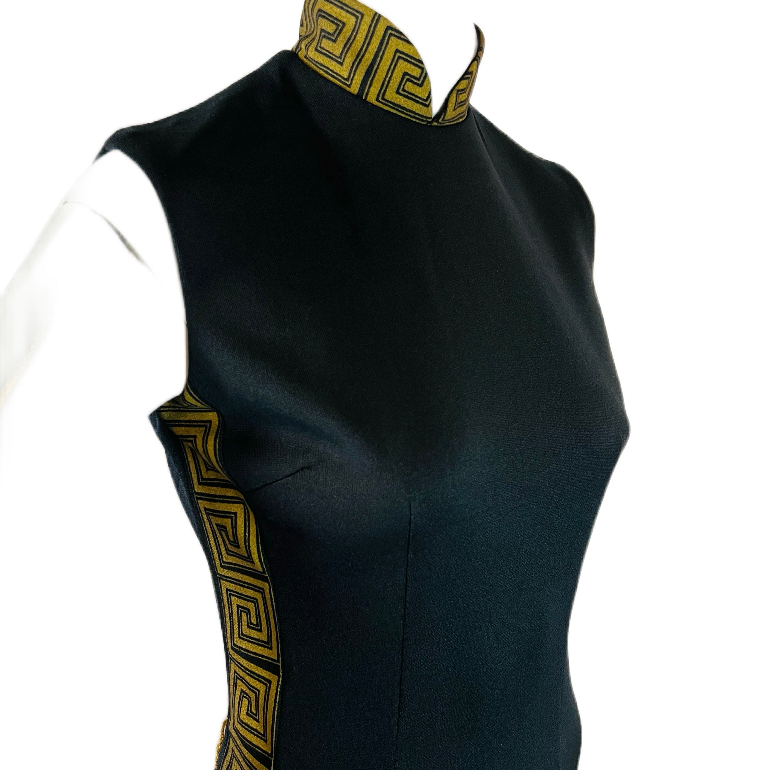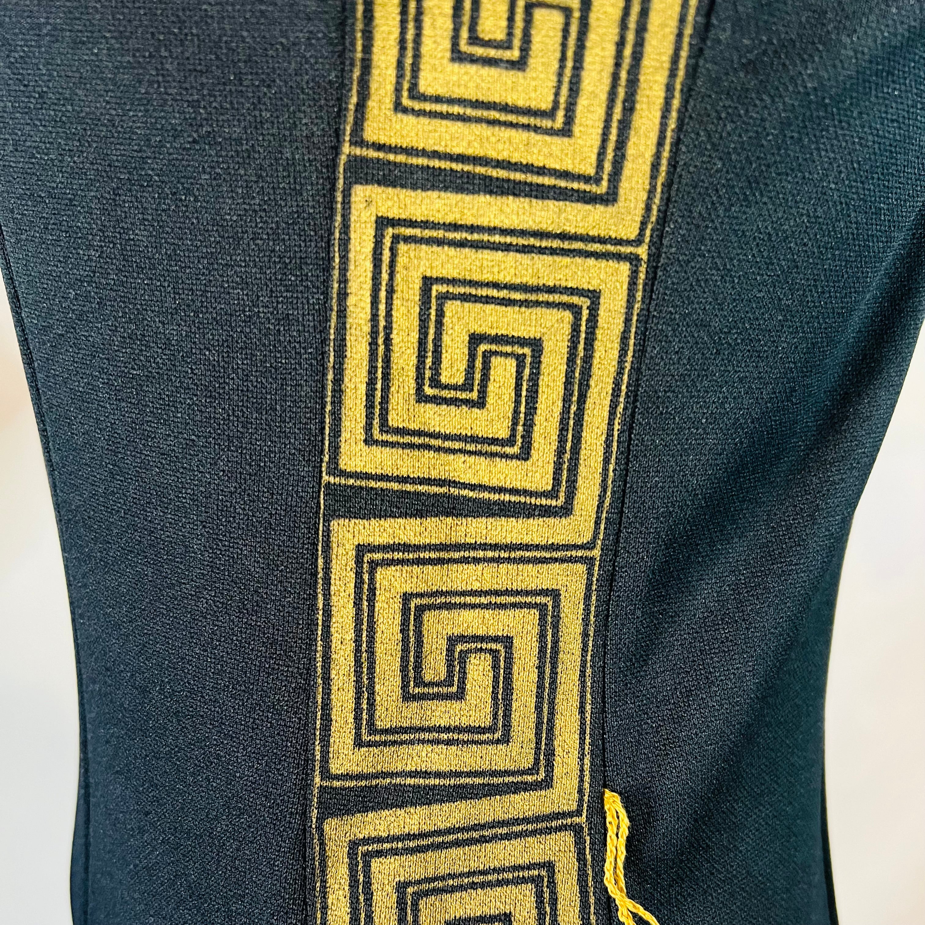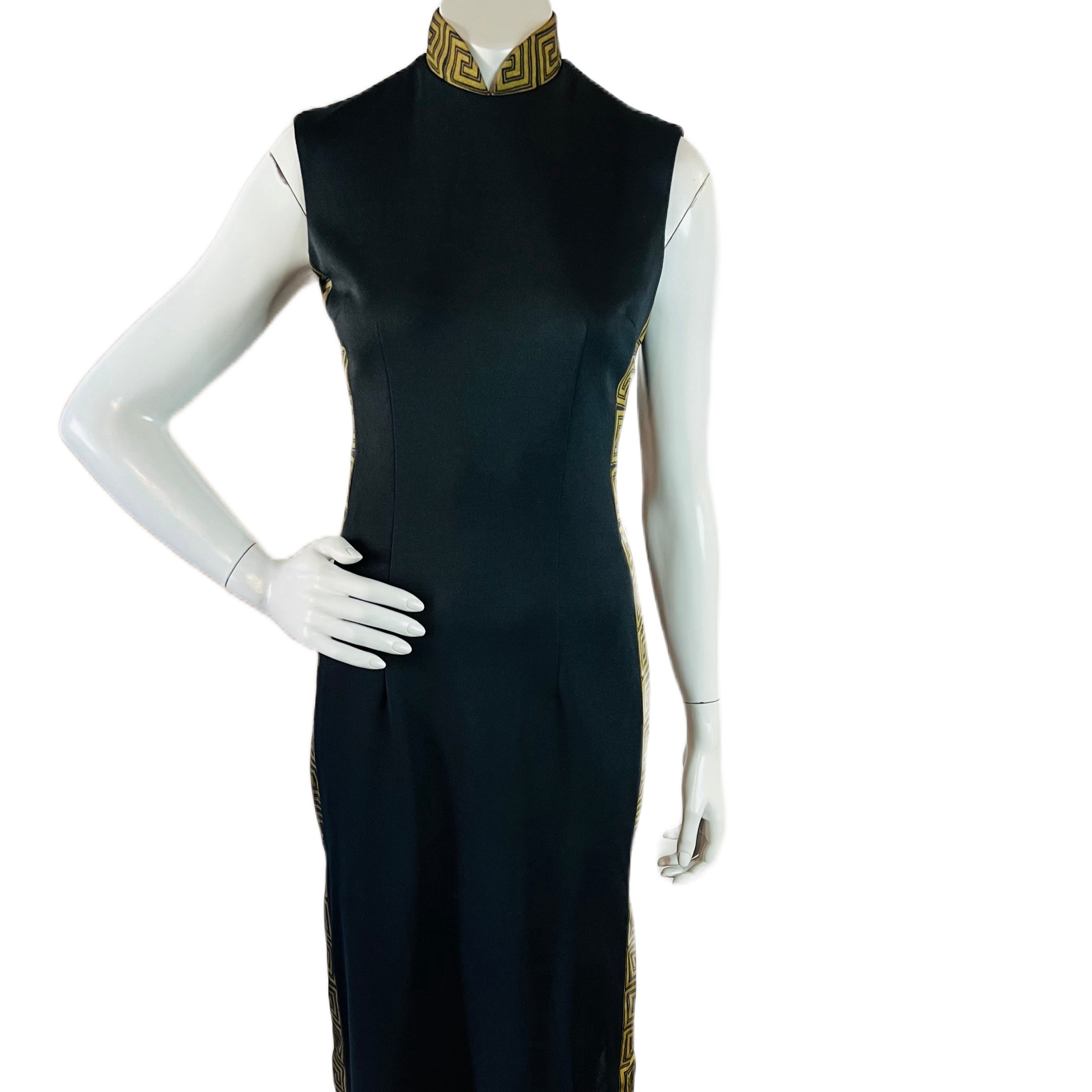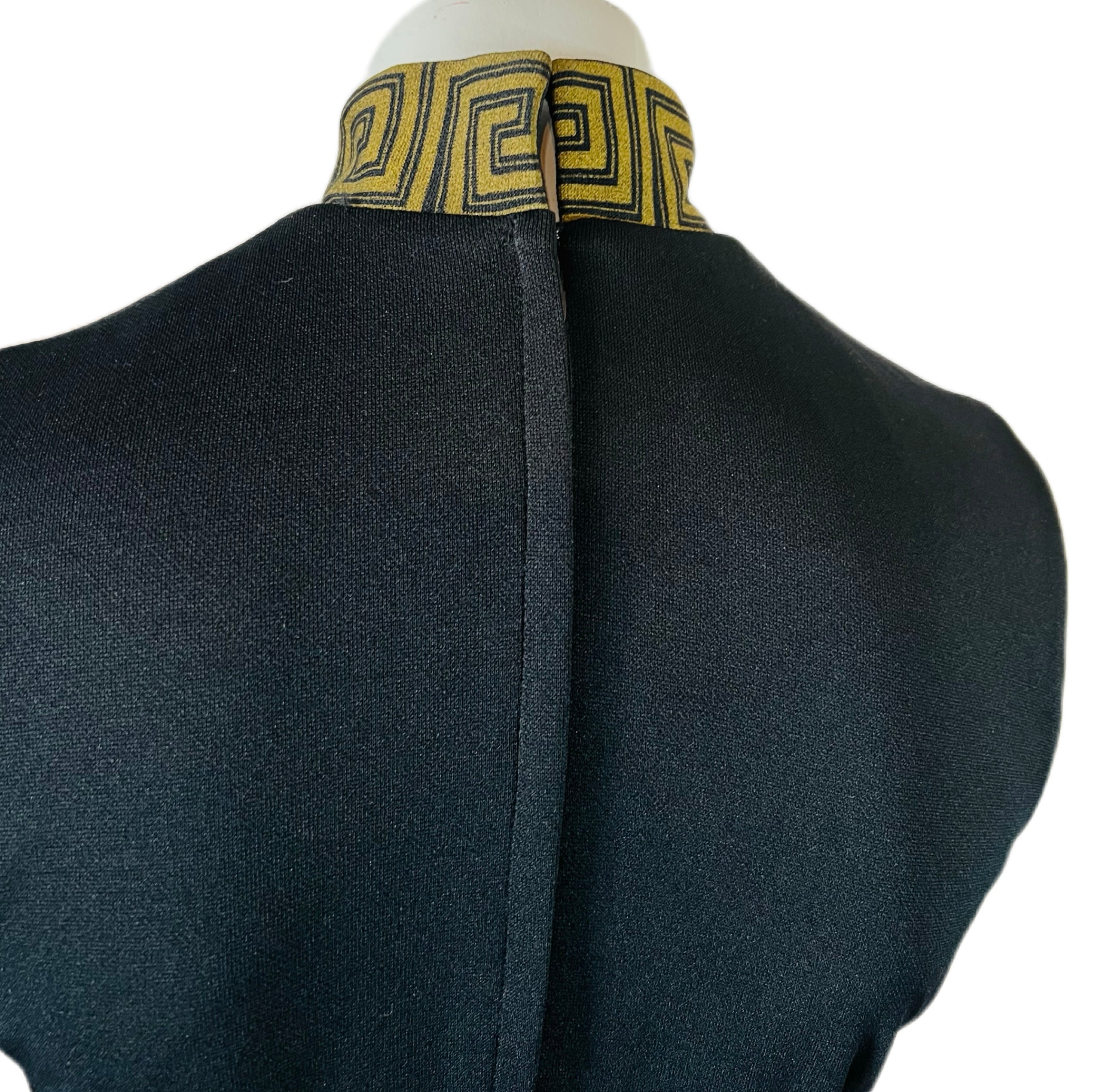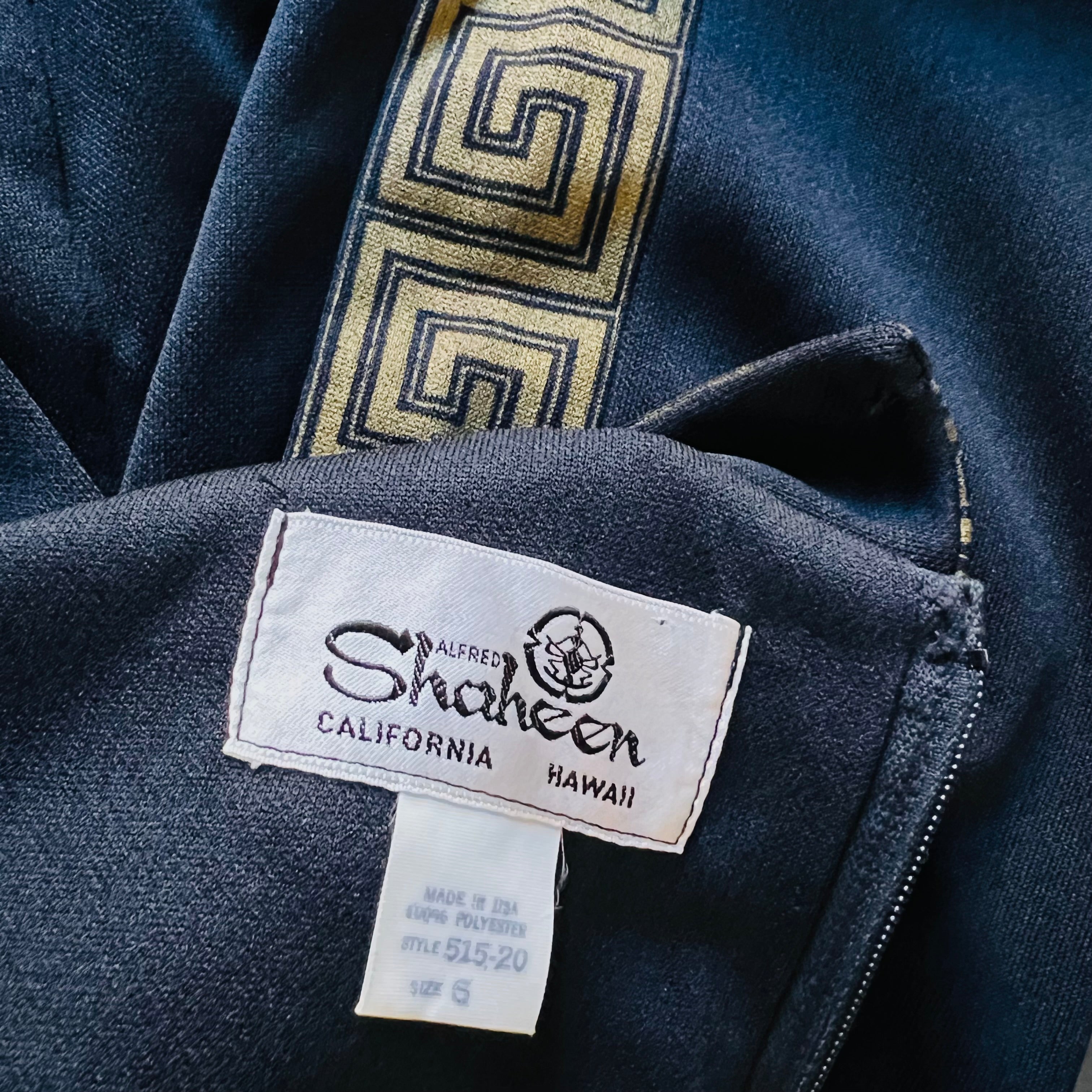 ⭐️Stun the crowd in this immaculate black & gold hostess gown by Alfred Shaheen. Slits at sides to show off your legs. High collar with hook and eyes at the back. Zips up back. Loops at sides for a belt (would love to see this with layered chain belts a la Chanel or Versace). This pieces seems like it has never been worn. Give her the moment she deserves!