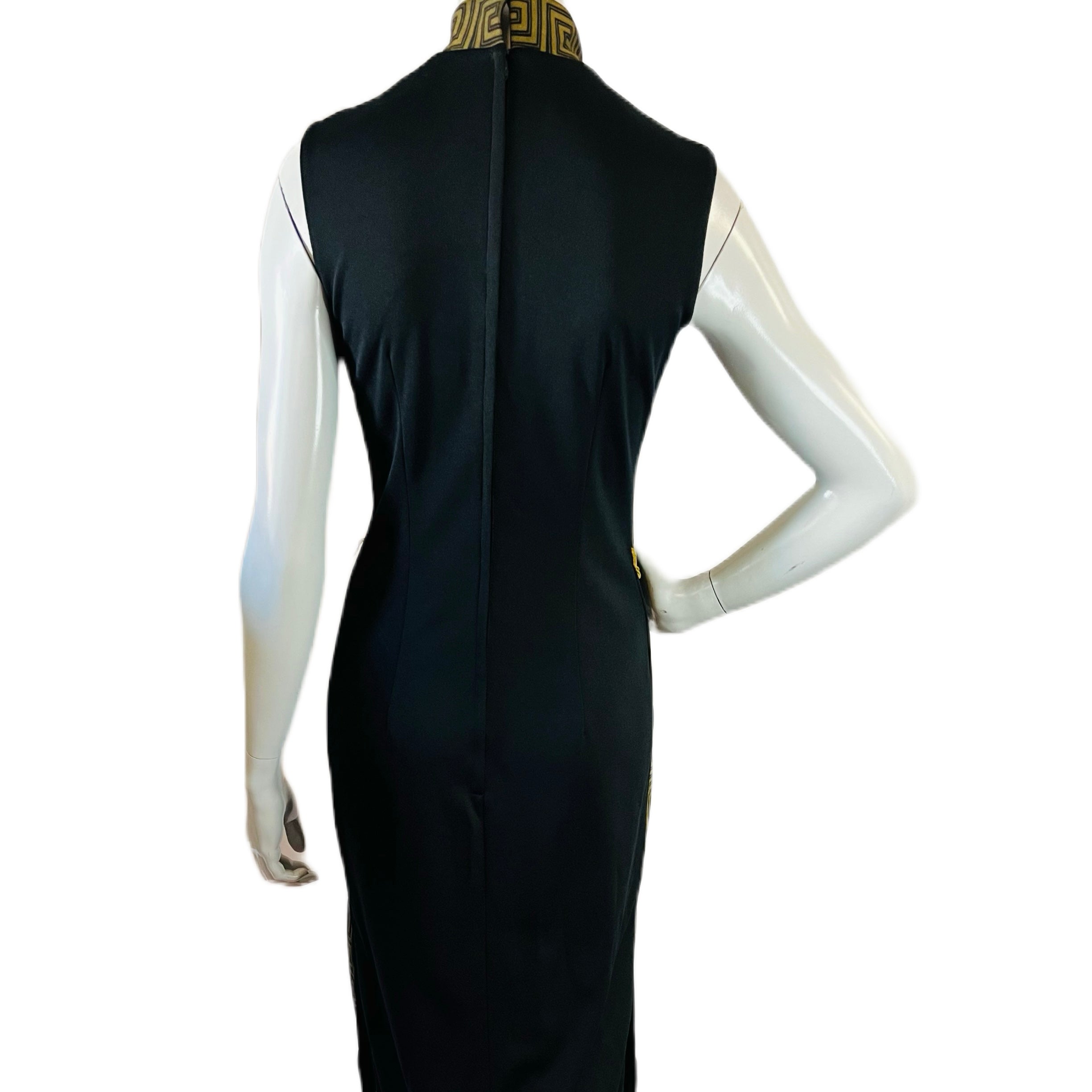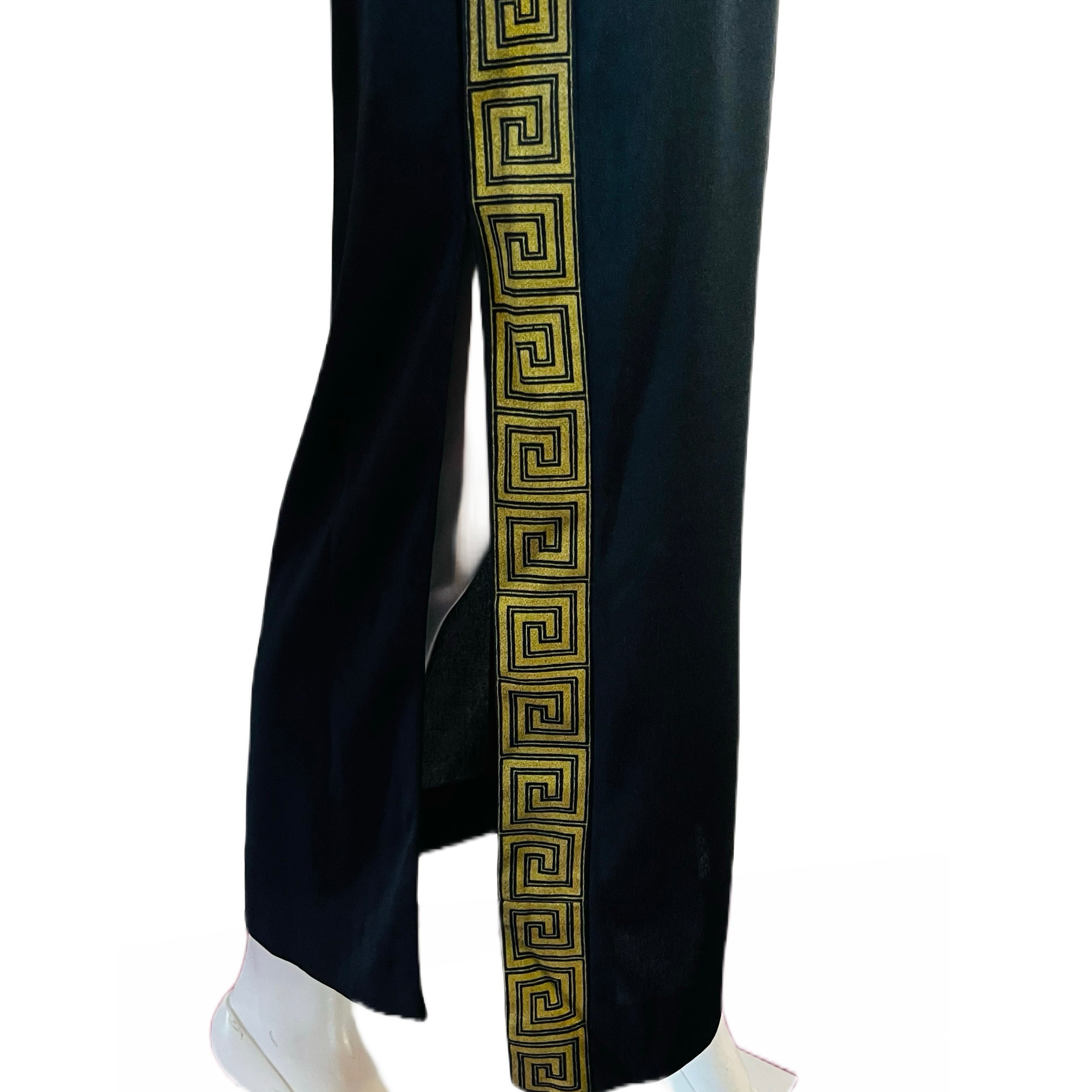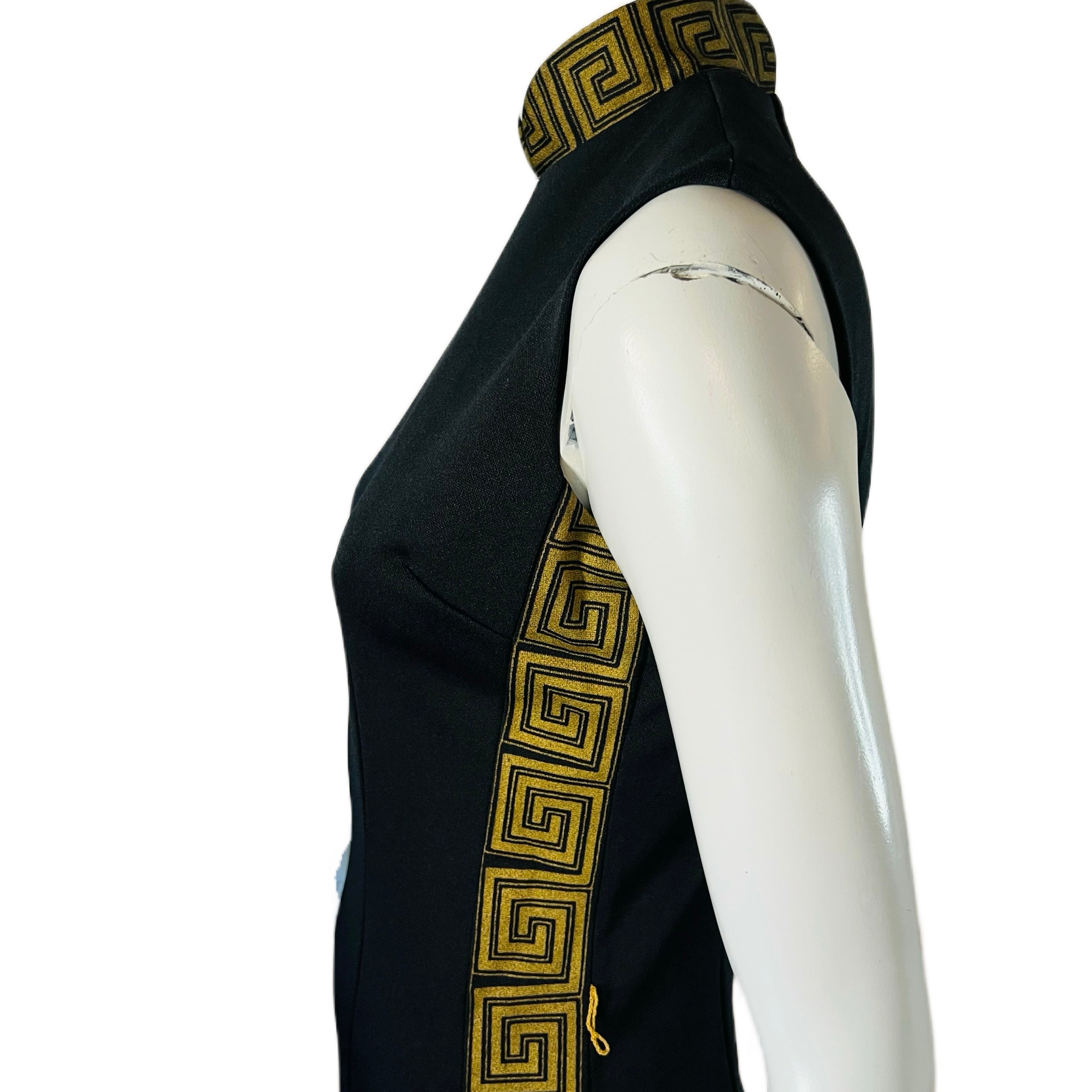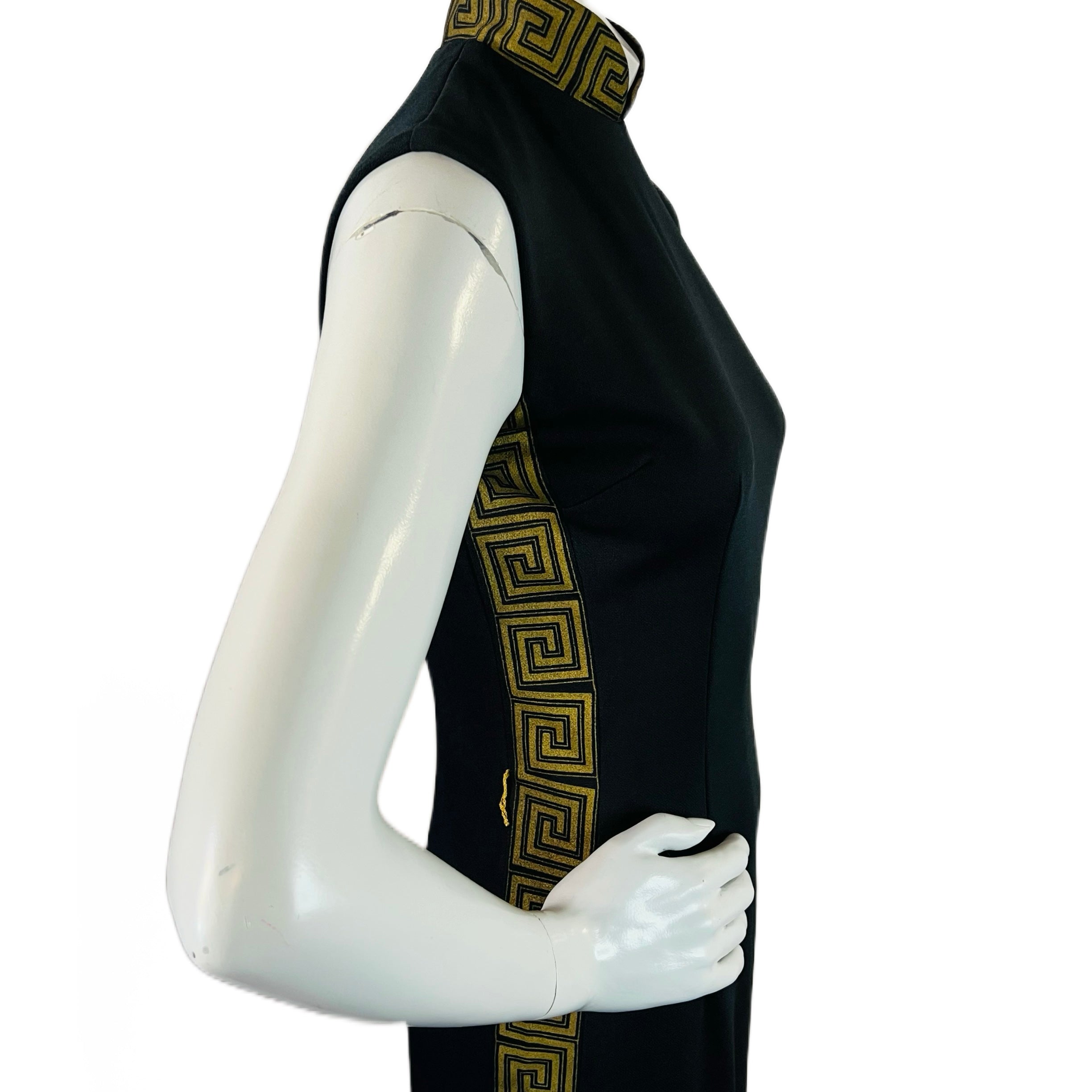 ⭐️Stun the crowd in this immaculate black & gold hostess gown by Alfred Shaheen. Slits at sides to show off your legs. High collar with hook and eyes at the back. Zips up back. Loops at sides for a belt (would love to see this with layered chain belts a la Chanel or Versace). This pieces seems like it has never been worn. Give her the moment she deserves!