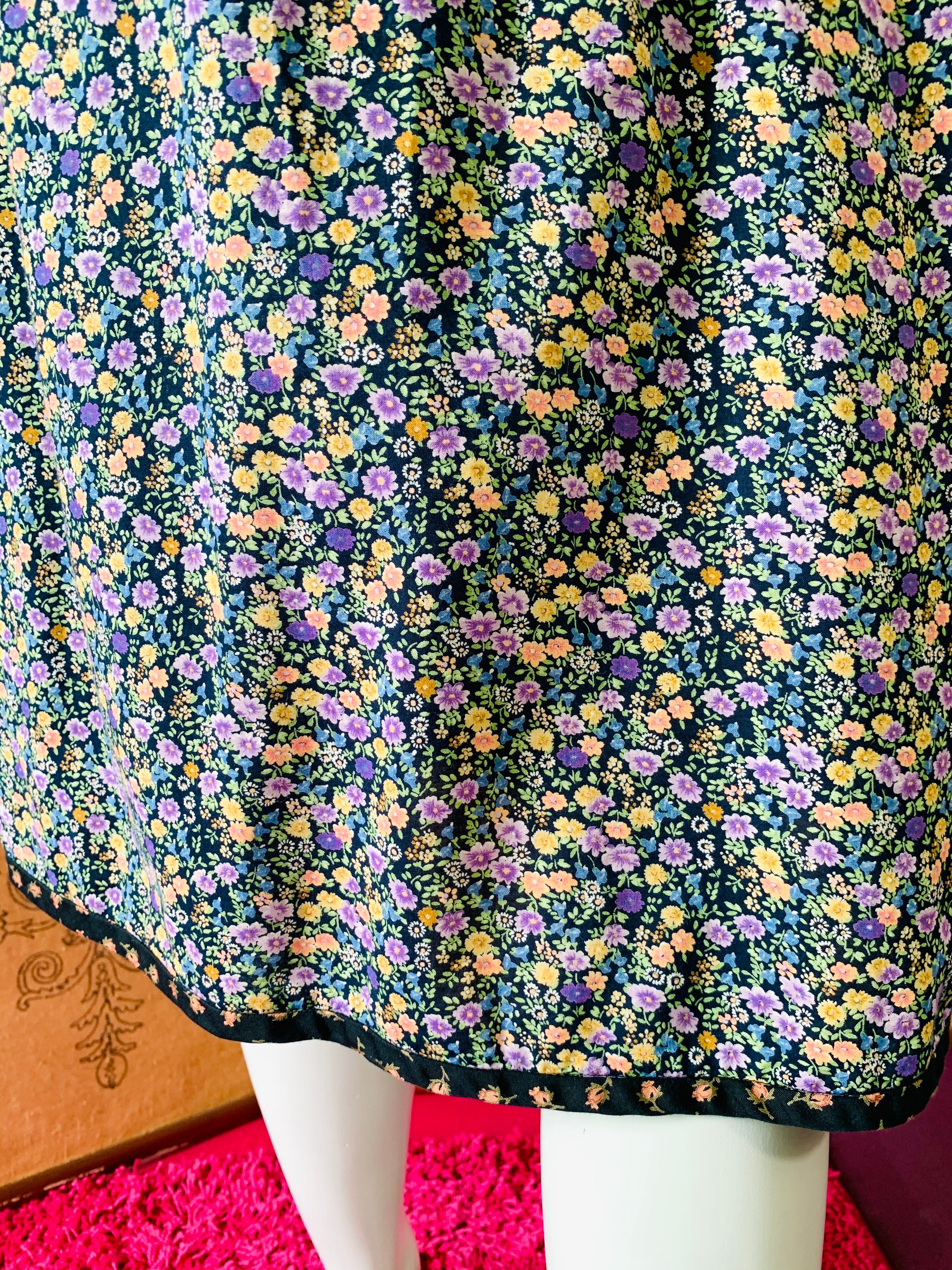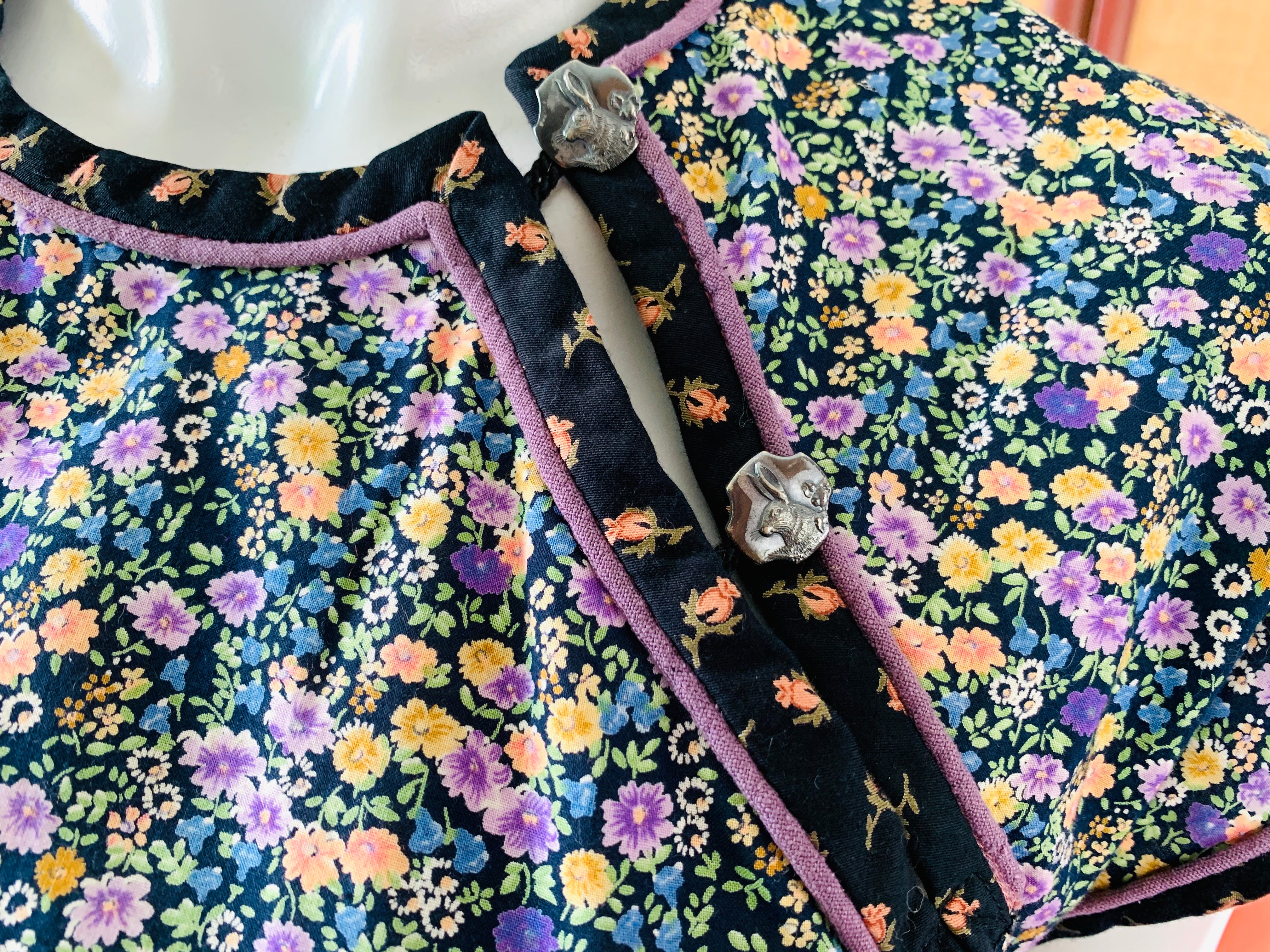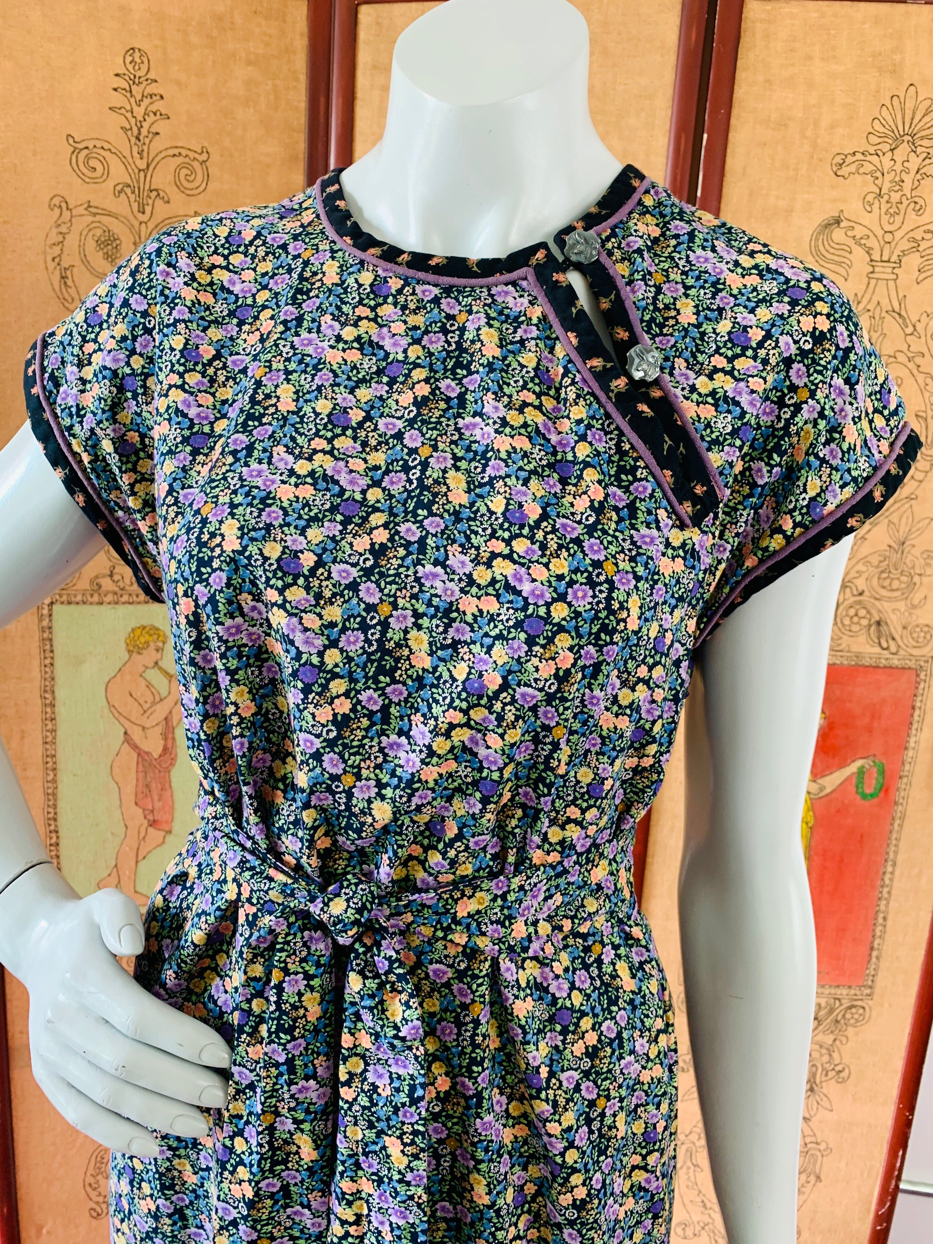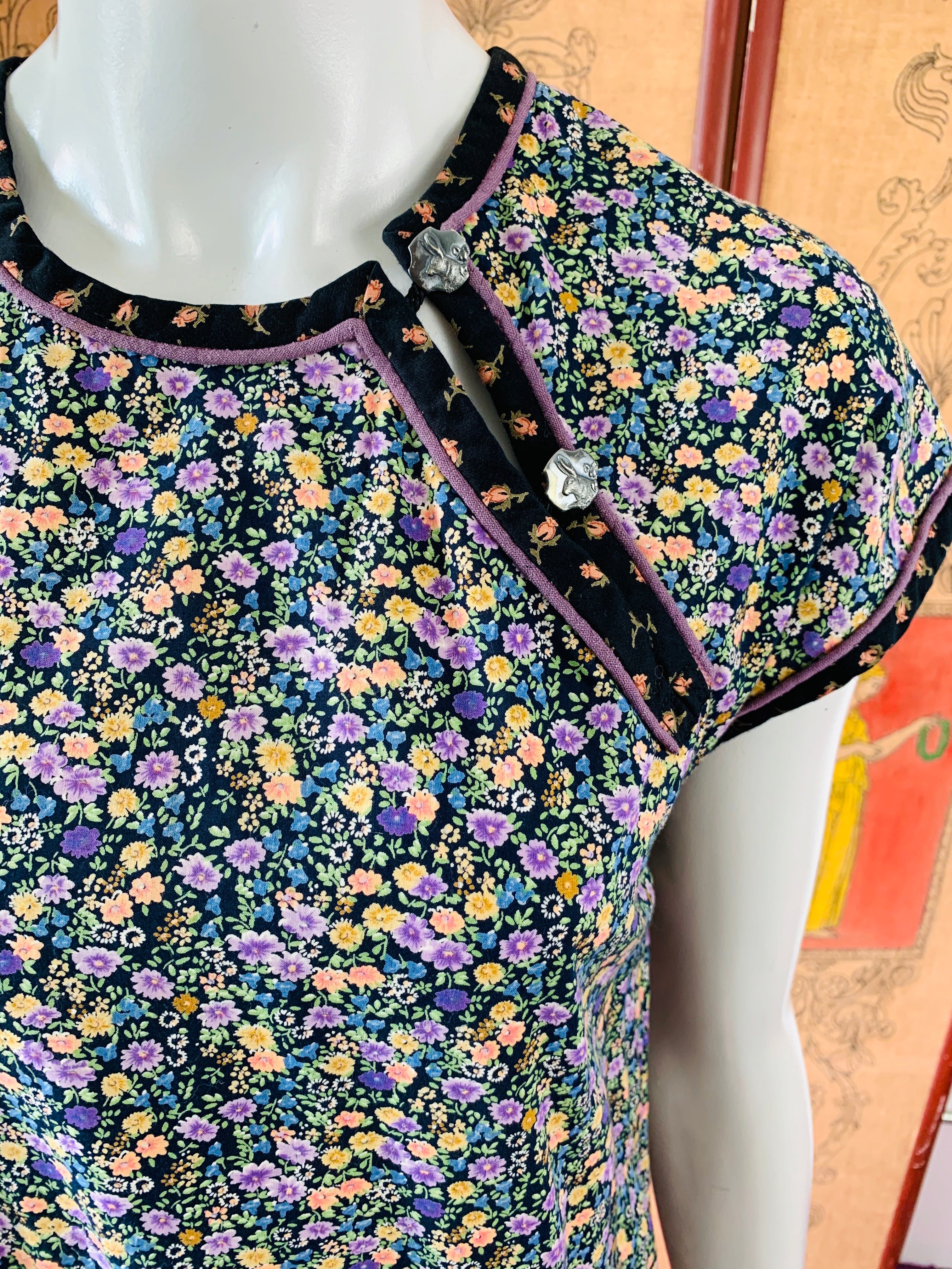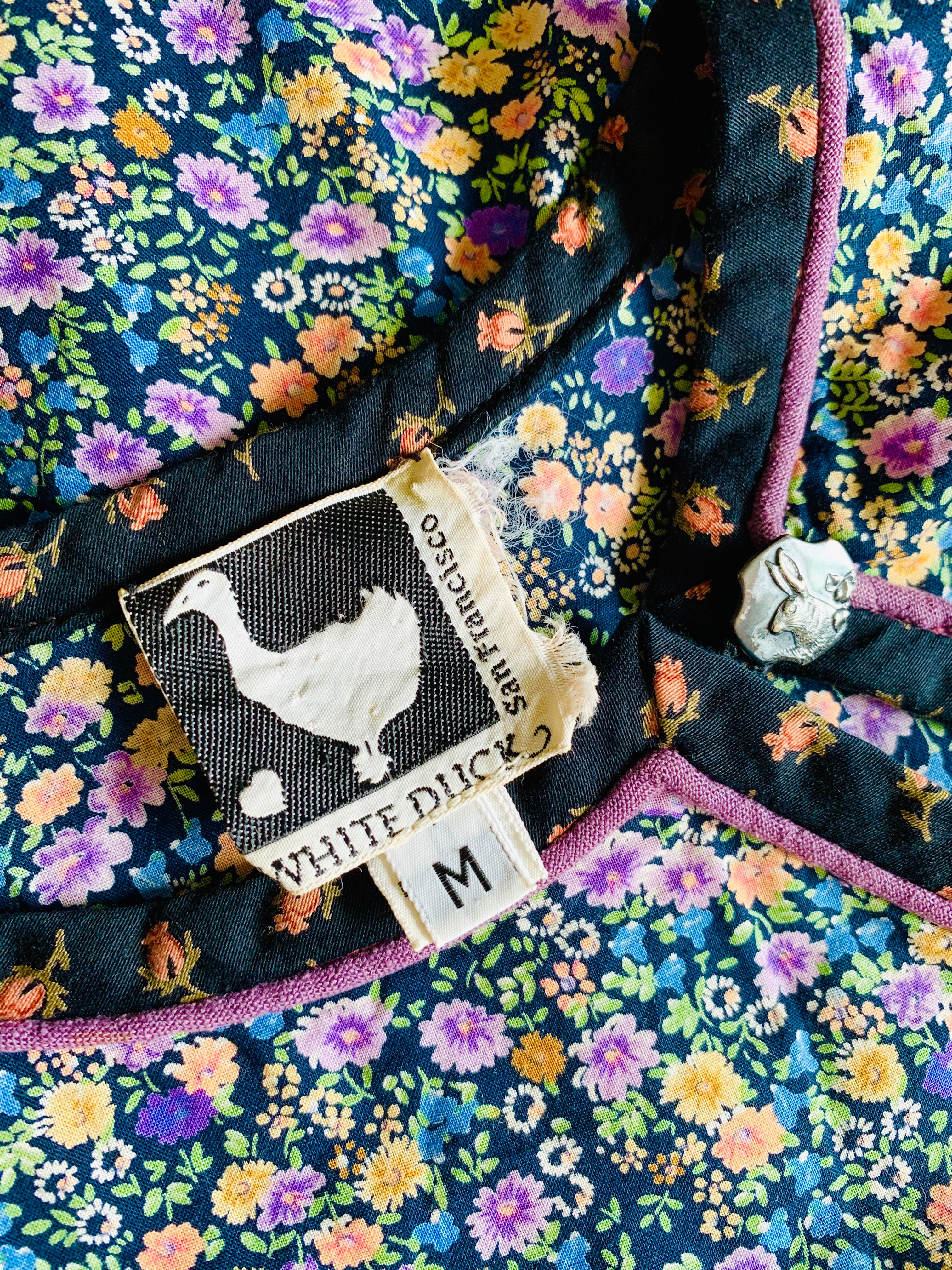 Legendary White Duck San Francisco label dress. Cute details. Rabbit buttons. Comes with tie for hair or for the waist. Midnight floral pattern.