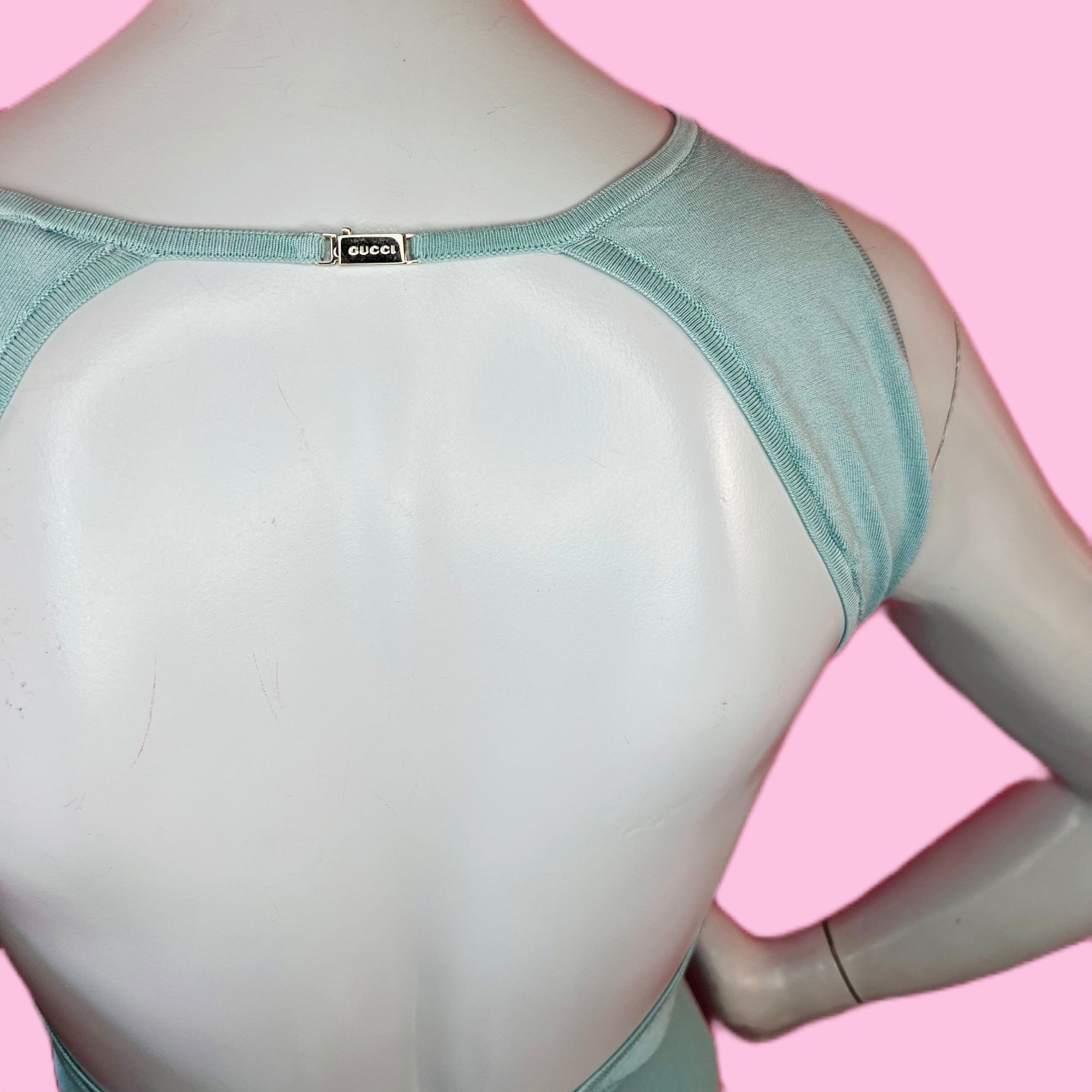 🤍💙 Gucci by Tom Ford was known for its sex appeal. This top is the perfect example of that. Gorgeous light blue silk. Fully open back. Gucci clasp with silver hardware in back. A total dream!