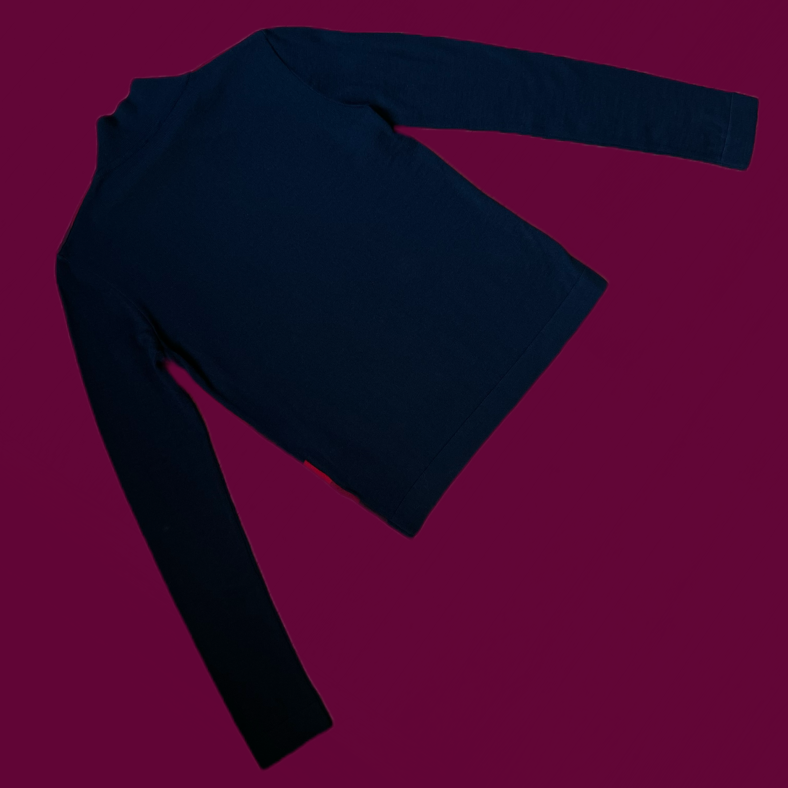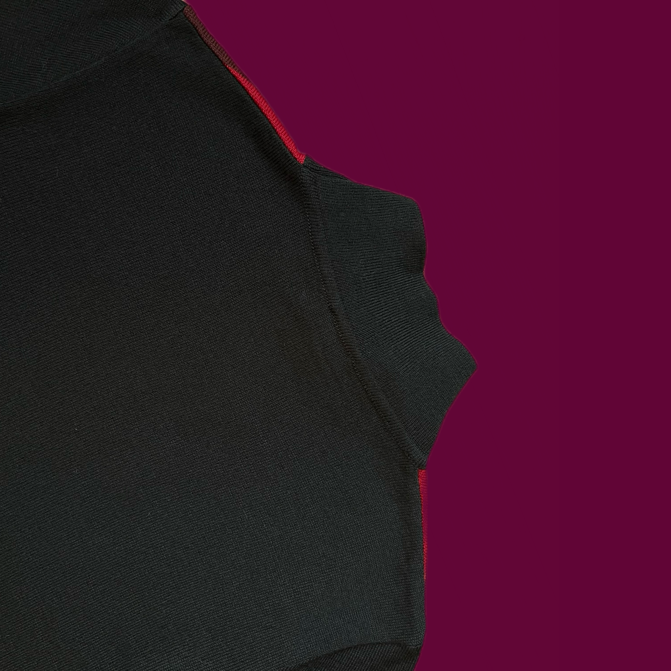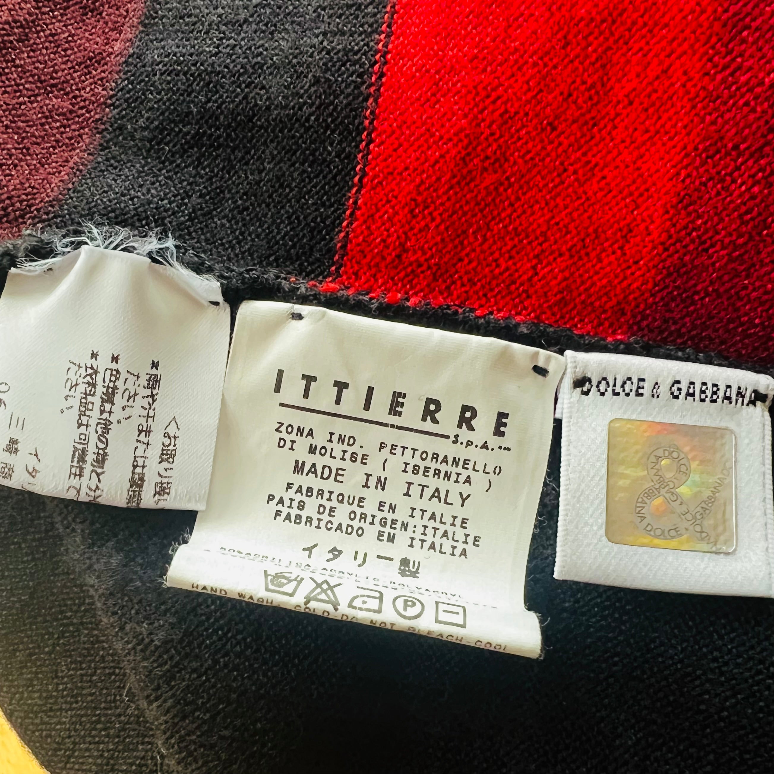 Gorgeous ombre striped knit top from the 80s-2000s D&G line from Dolce & Gabbana. Has mock neck. Love the shades of red in the stripes. Black at sleeves, back and neck. Pull over head to wear. Nice thin fabric that still keeps you warm. A classic everyday staple to style in so many ways!