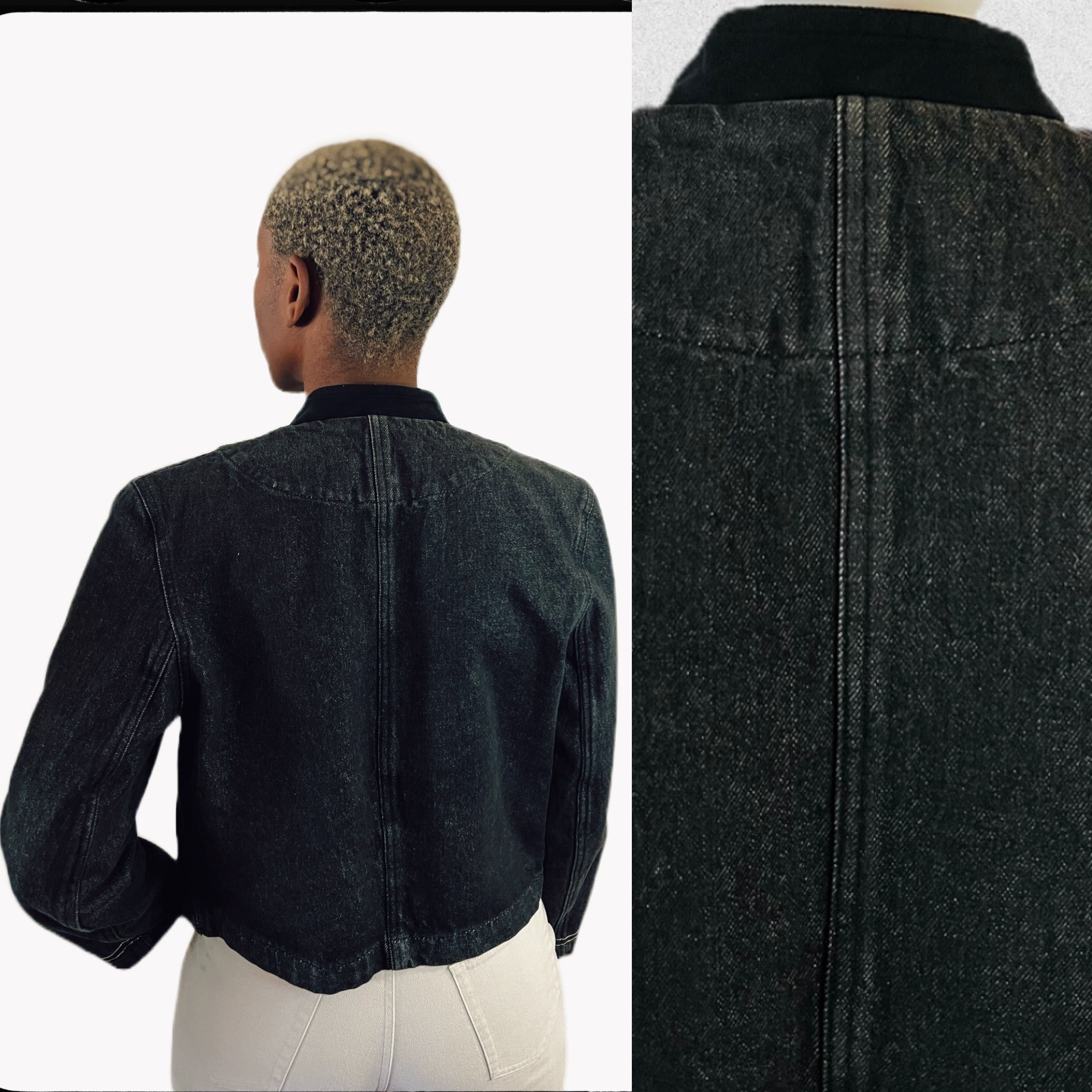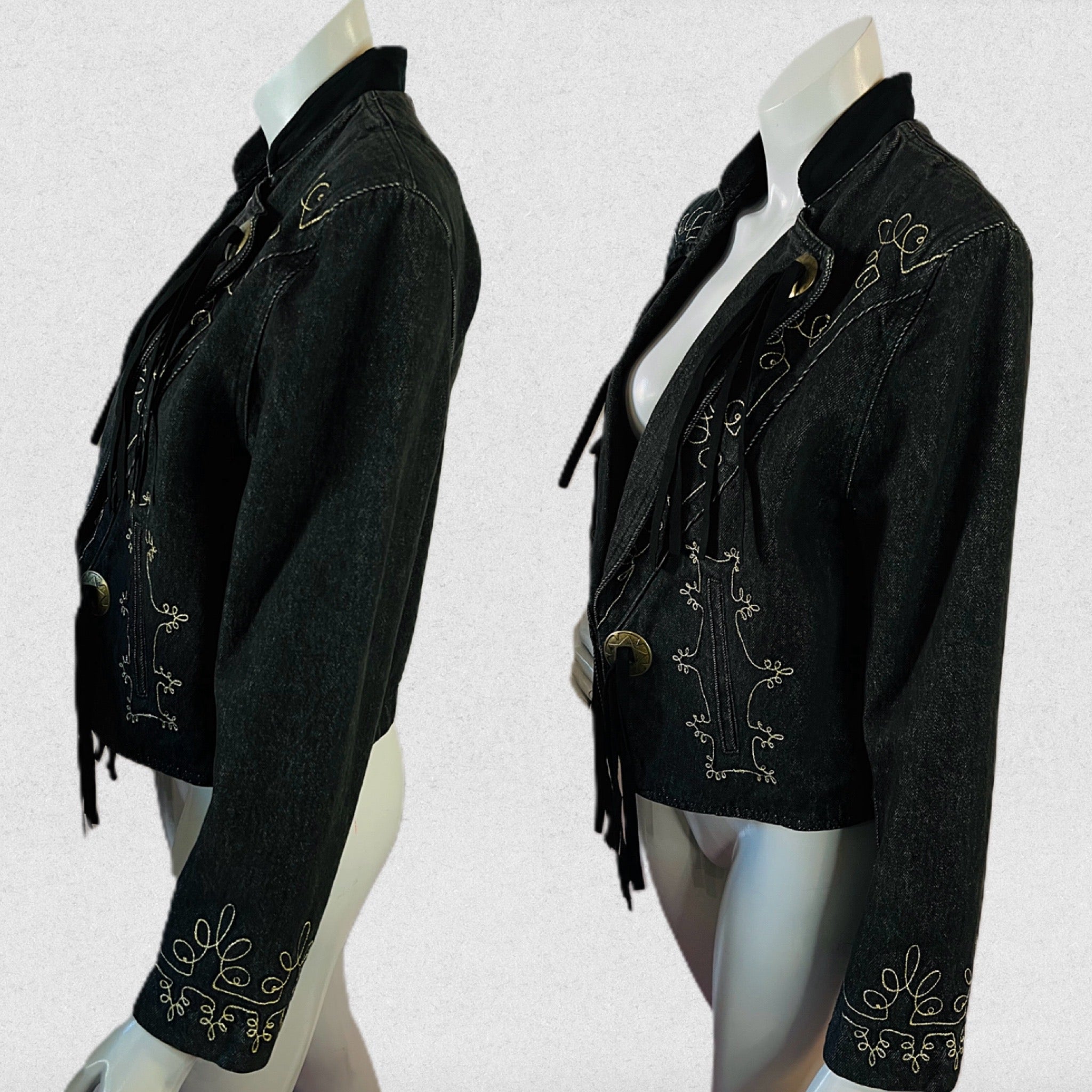 Kenzo Black Denim Fringe Jacket with Gold Embroidery