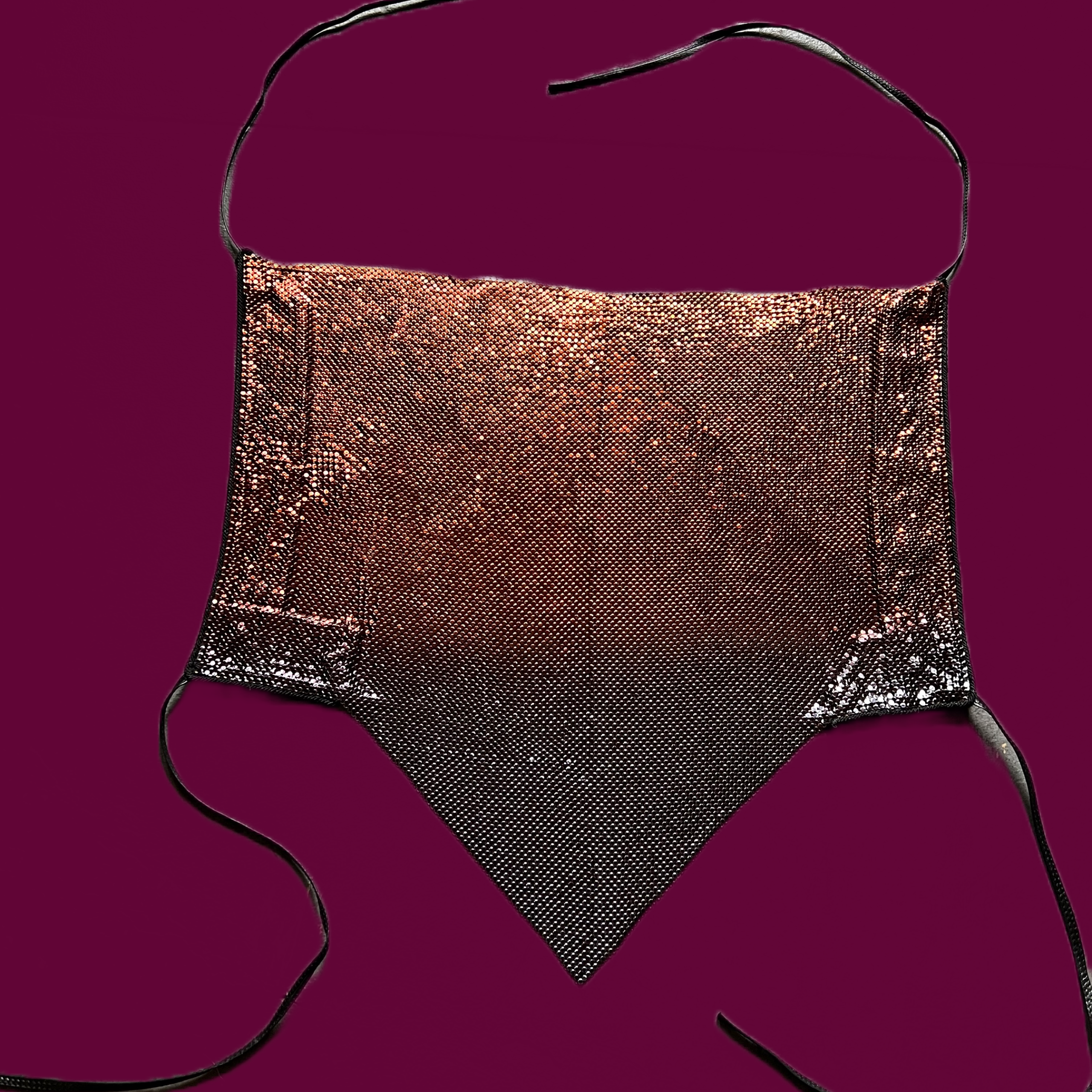 🤎✨🎇 Total dream piece. Ferrara Whiting and Davis copper/gunmetal ombré halter. Pyramid shape copper drop style. Ties in back with leather ties. Adjustable fit. One of a kind!